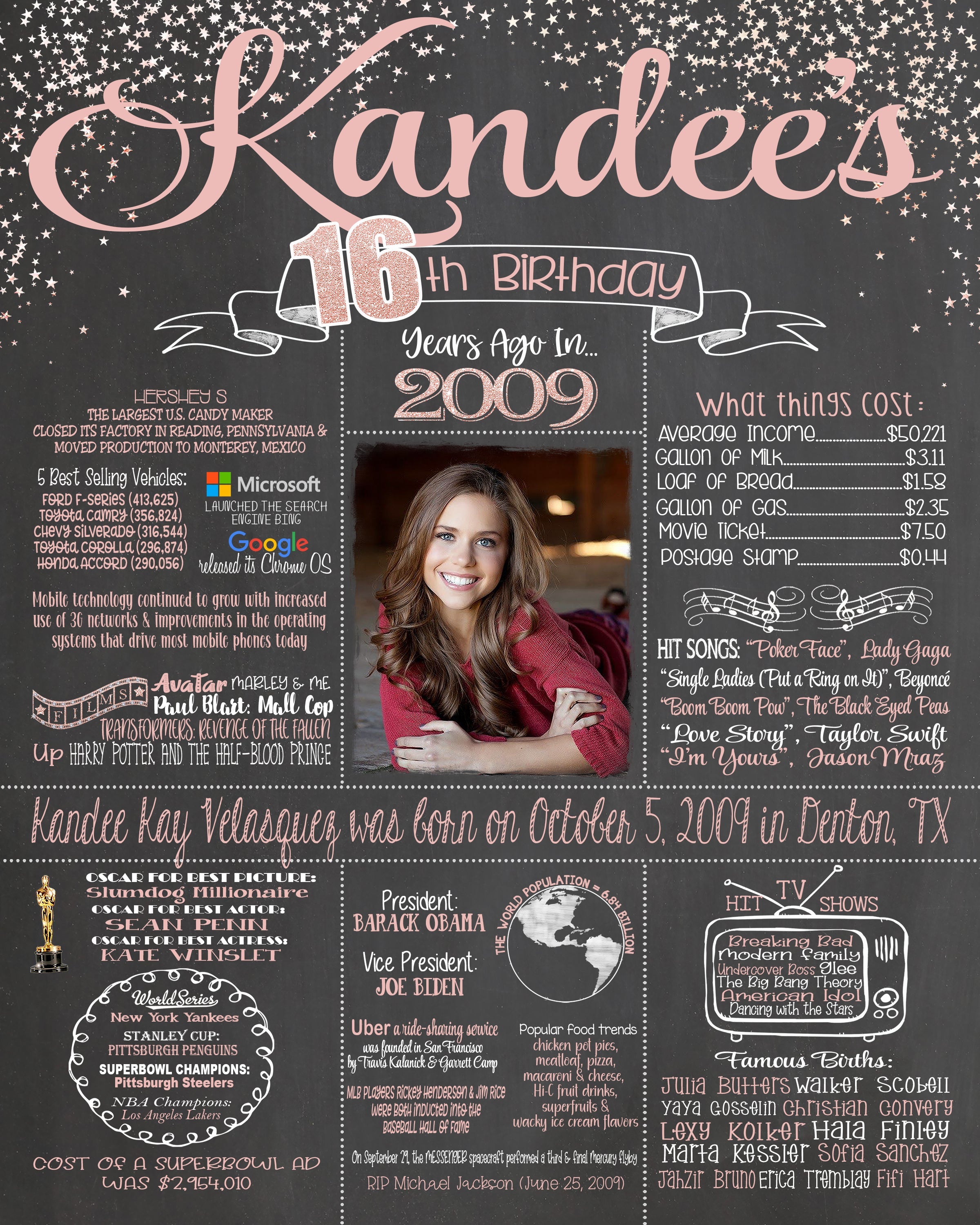 Sweet 16 Birthday Chalkboard - PHOTO Chalkboard - Sweet Sixteen Stars, 2009