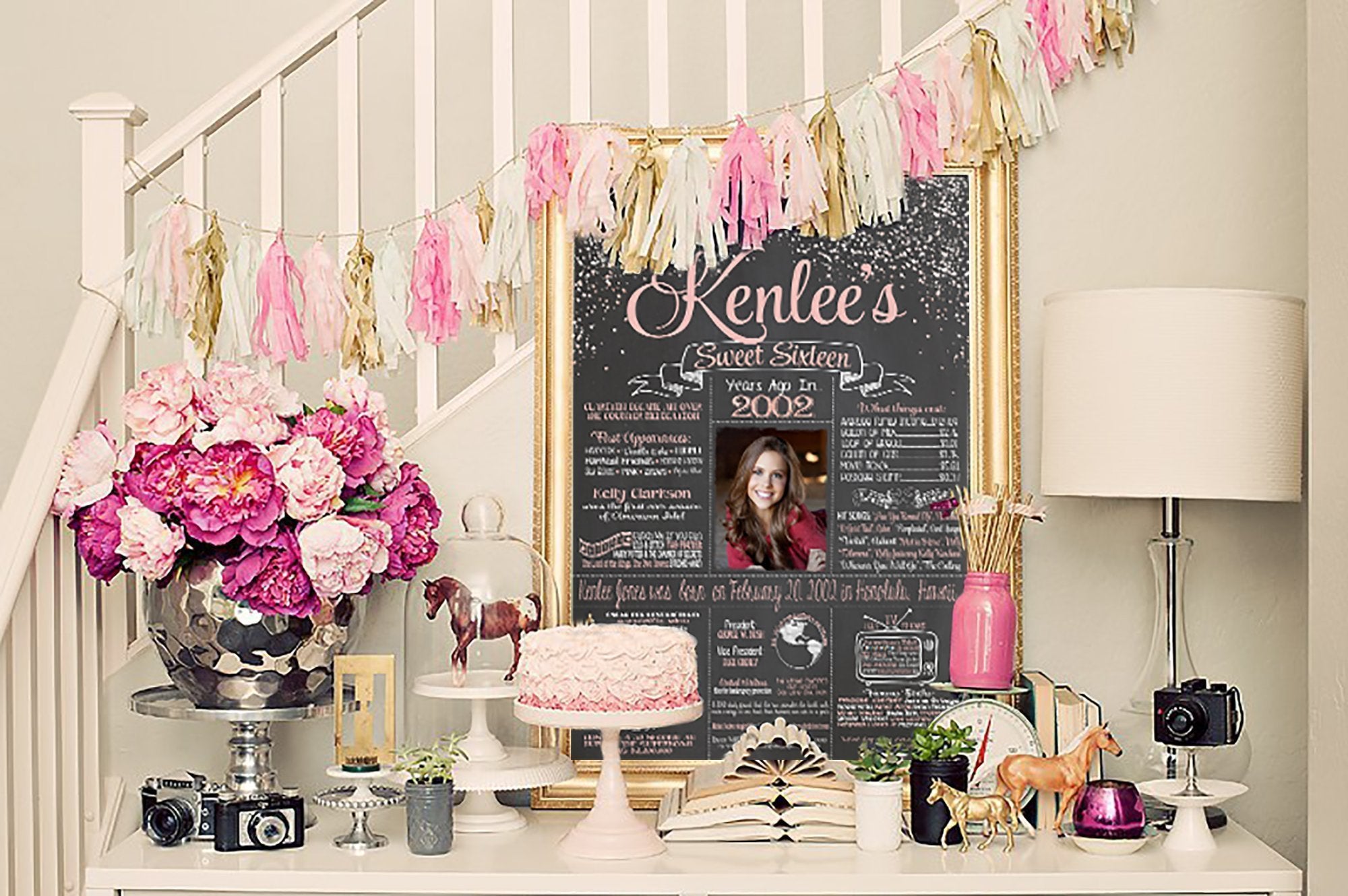 Your chalkboard can be printed at most local photo print shops: walgreens, walmart, staples, fedex kinkos, office depot, etc The file may be printed on card stock or regular paper and then mounted onto foam board or placed in a frame. Most office supply stores will print the poster and mount it on foam board for you! The ways of presenting your child's first birthday poster are endless: you could frame it, mount it on a foam board, print it on a canvas, or even share it digitally on facebook or thru email.