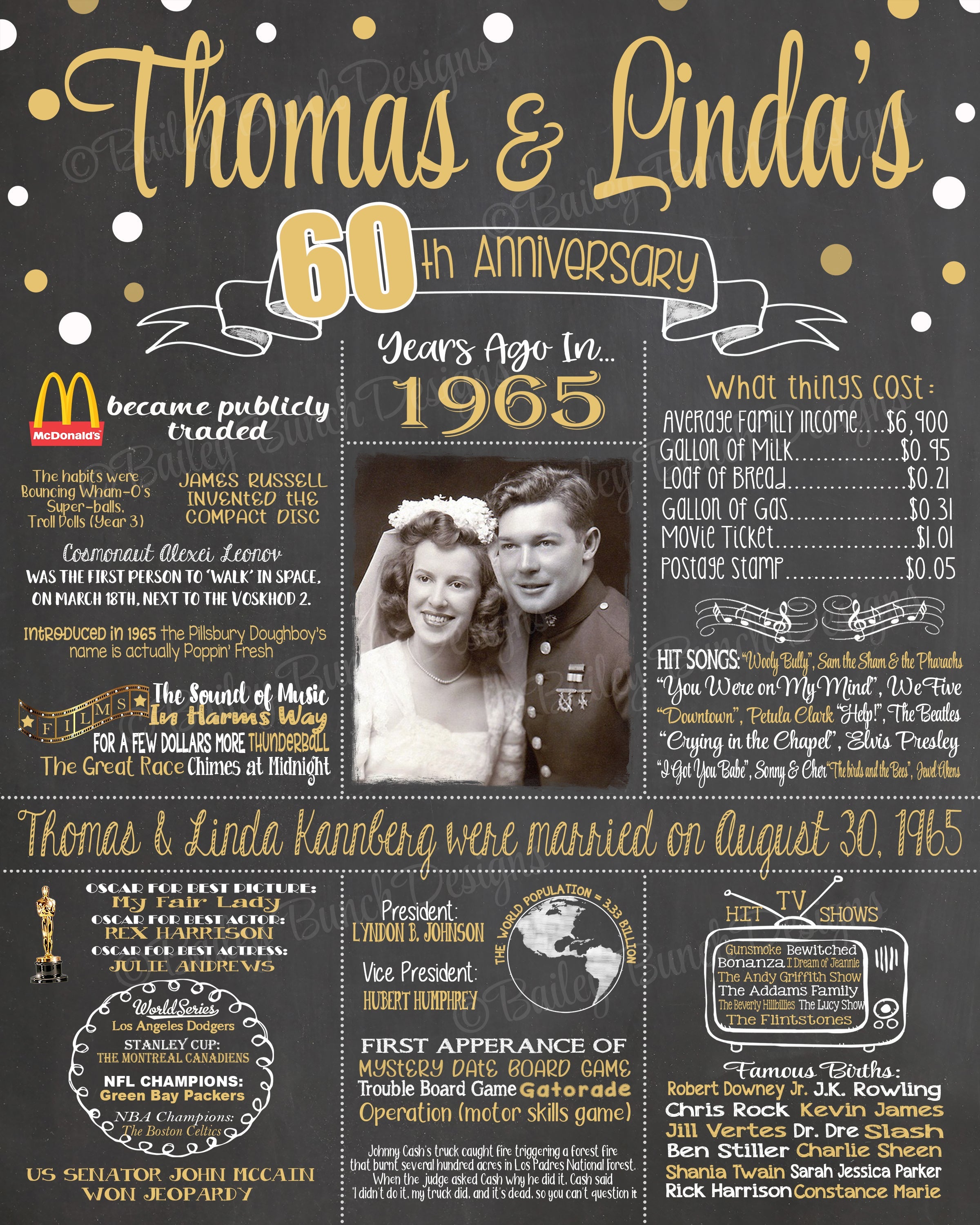 60th Wedding Anniversary Chalkboard - PHOTO Chalkboard,1965 Anniversary Board ANNIV60CHALK0520
