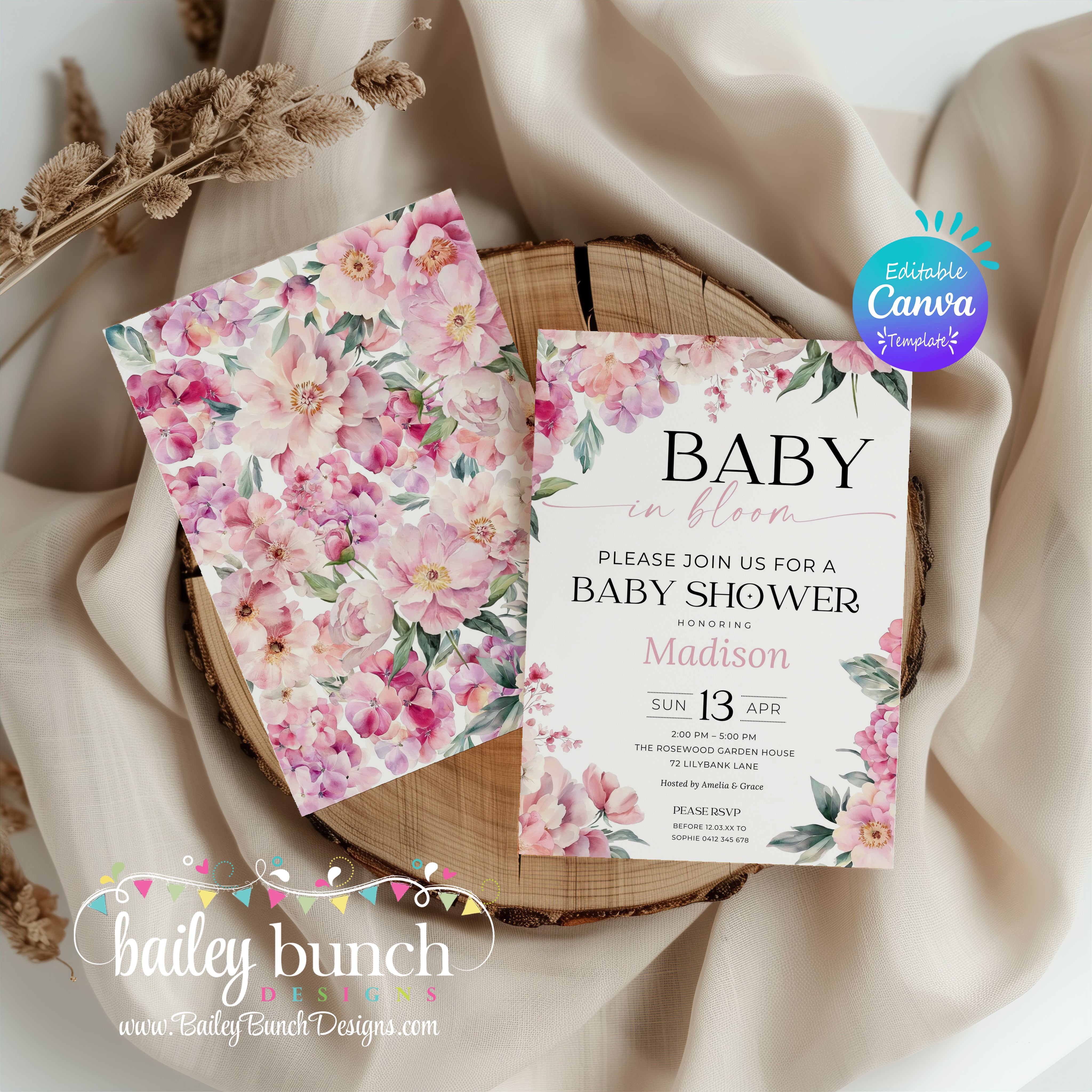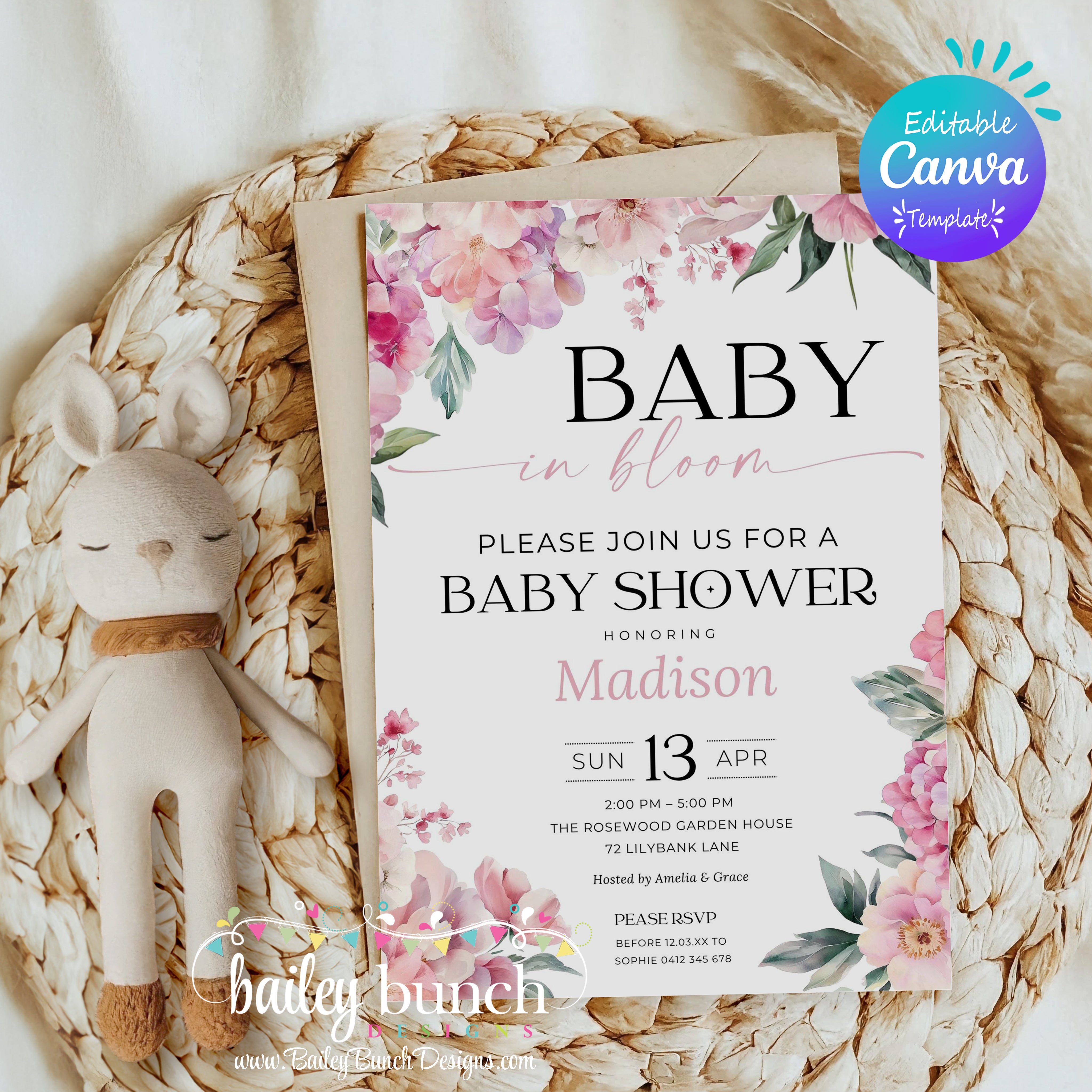 Introducing our Baby In Bloom Wildflower editable baby shower invitation, designed to brighten up your special day with a touch of spring with watercolor wildflowers and elegant font. This set features both 5x7 invitation and a mobile-friendly version, enabling you to effortlessly share the joyful news with friends and family. With its delightful wildflower theme, this invitation set is the perfect way to celebrate the arrival of your little one and ensure a memorable baby shower.