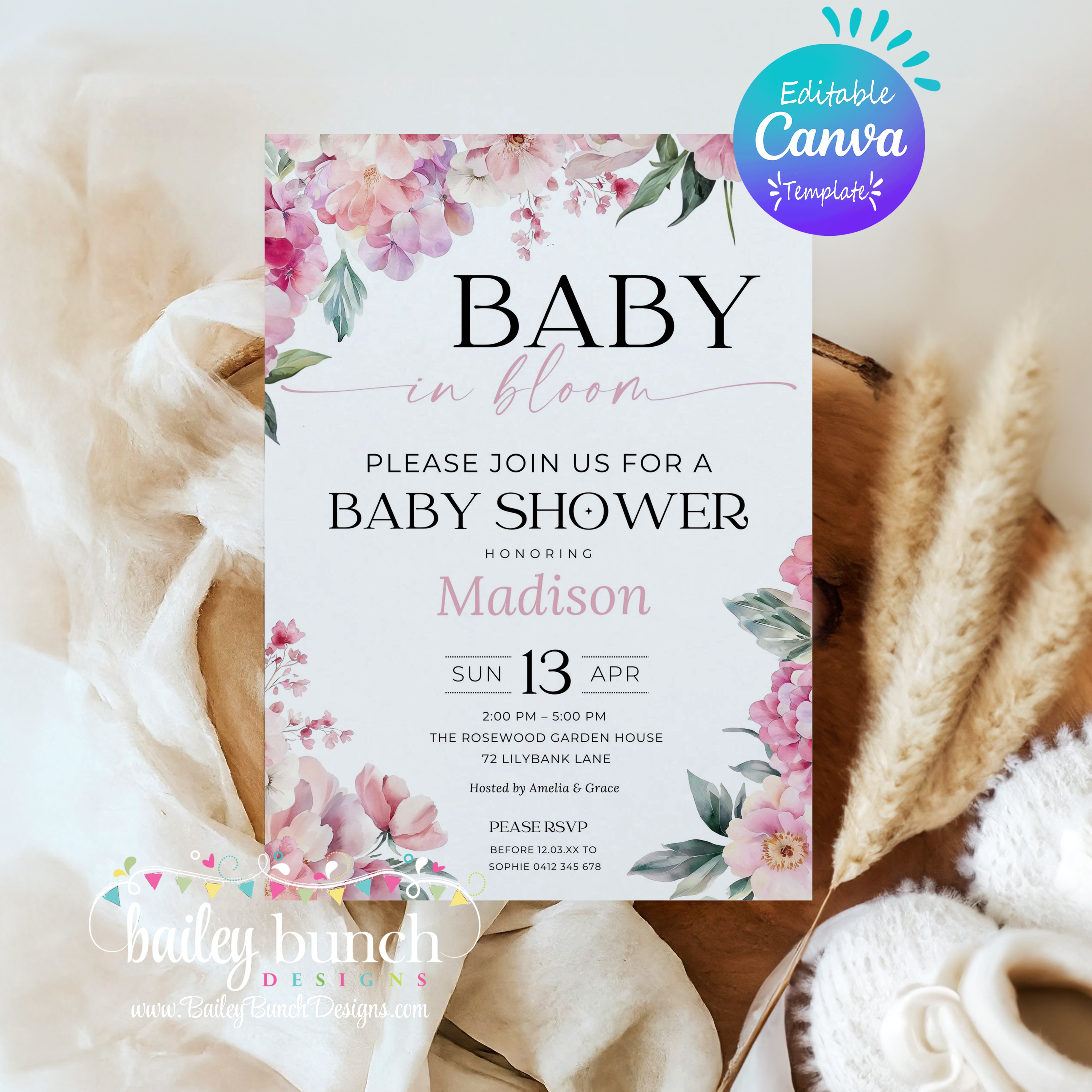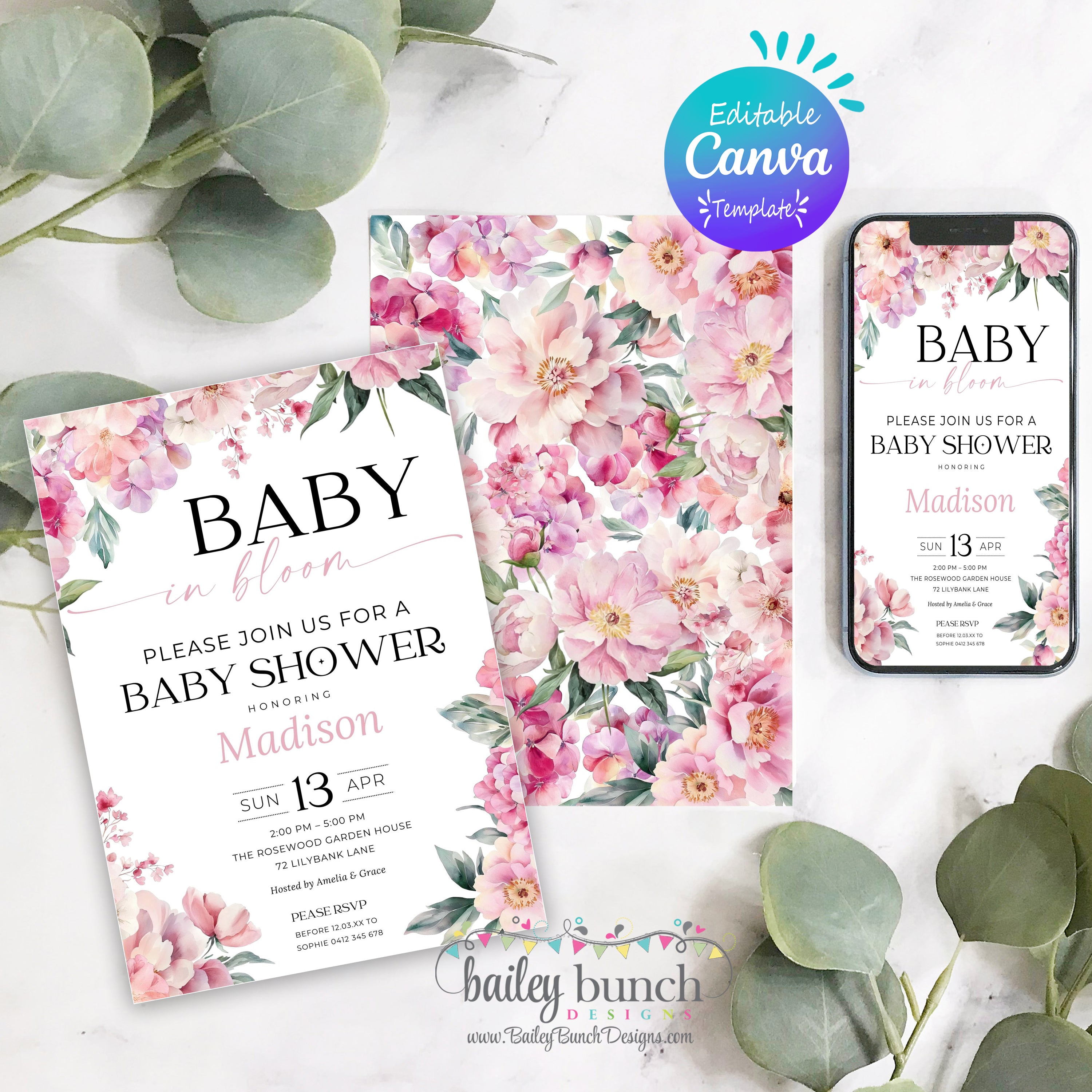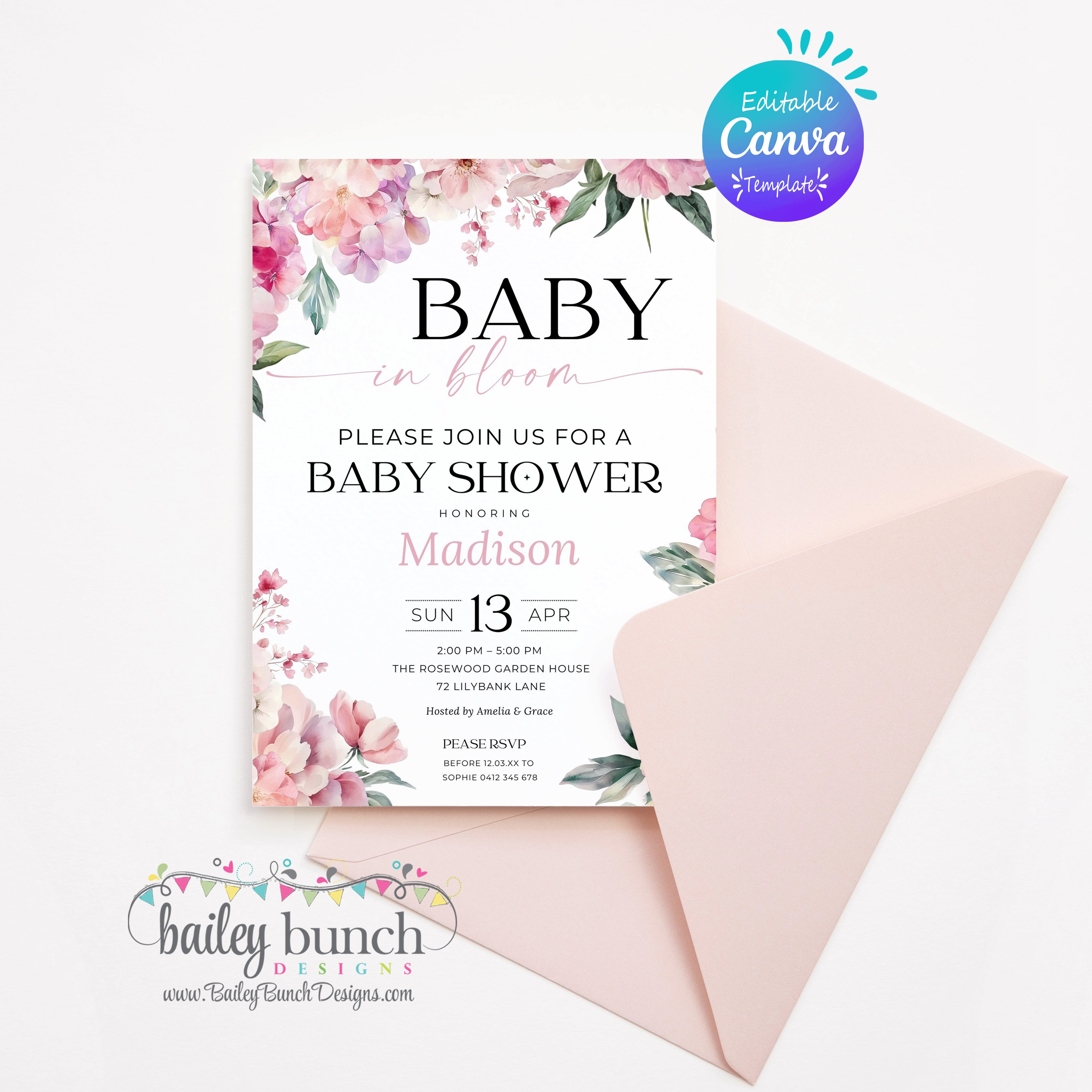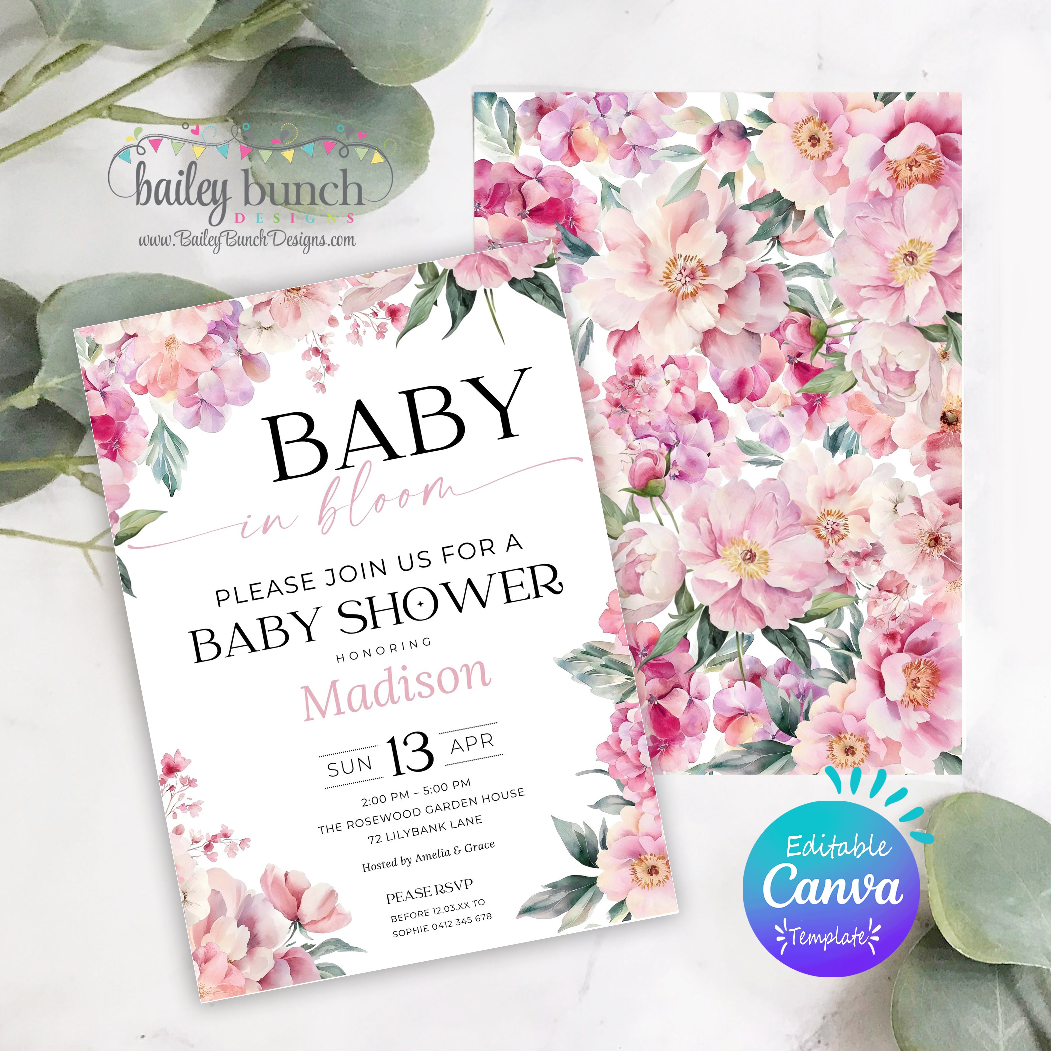 Baby in Bloom Baby Shower Invite Template BDAYBABYBLOOMINVITE05