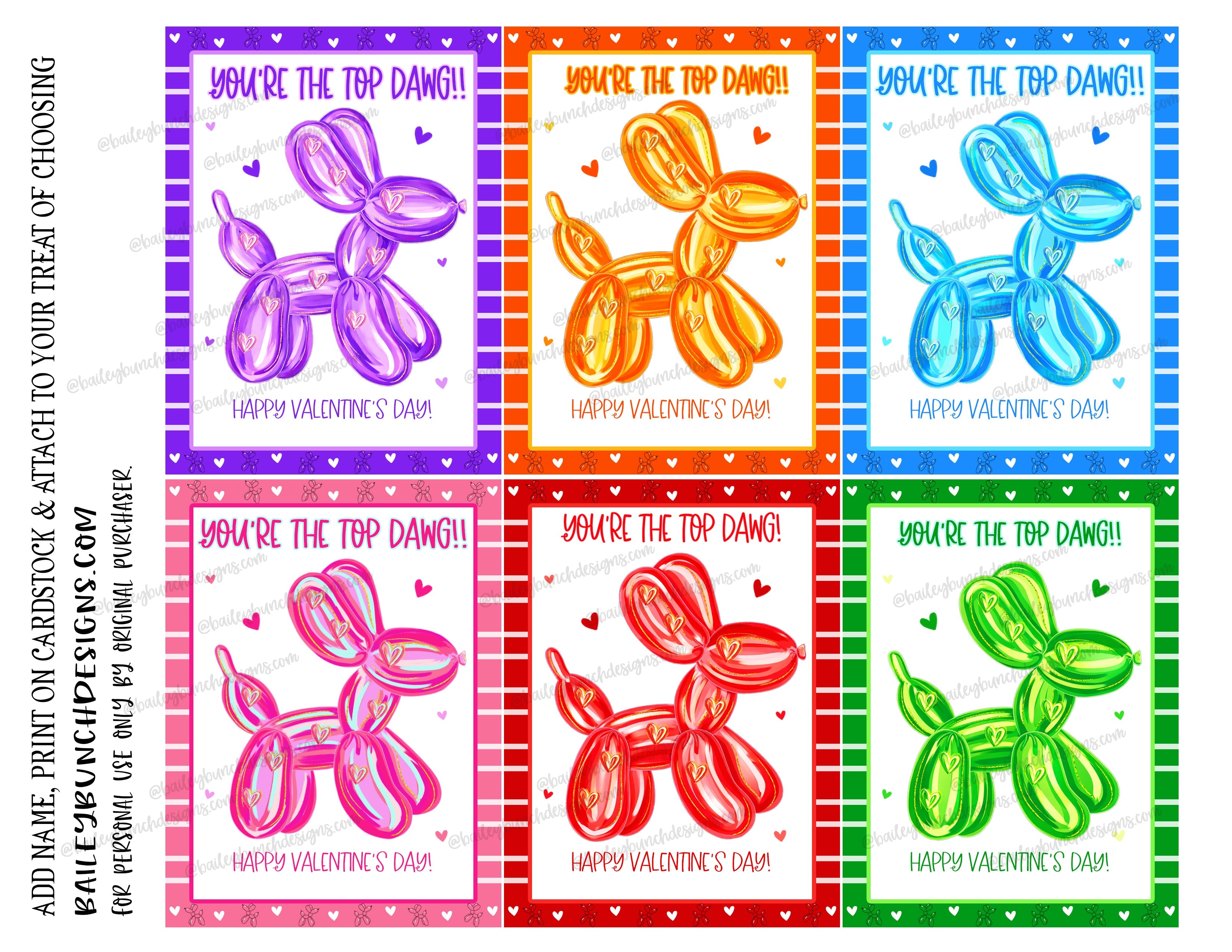 Adorable Balloon Animal Dogs Valentine Cards for Your Child's Classroom Exchange