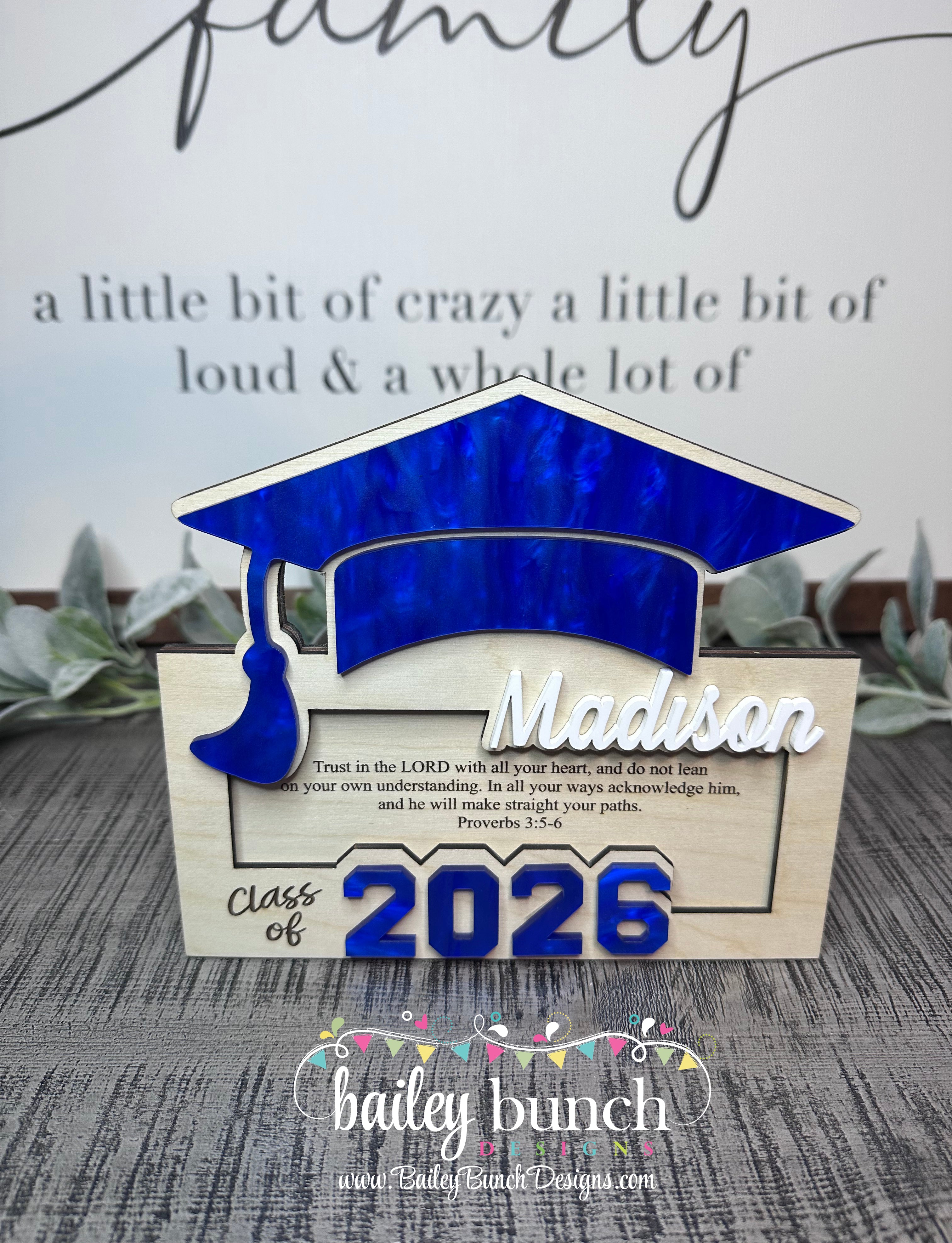 •Layered - Hat, Year & Name are layered with Blue PEARL and White Acrylic•Magnet Option - You can also place a photo inside this personalized money holder & use it as a fridge magnet, turning it into a meaningful keepsake you can cherish for years.