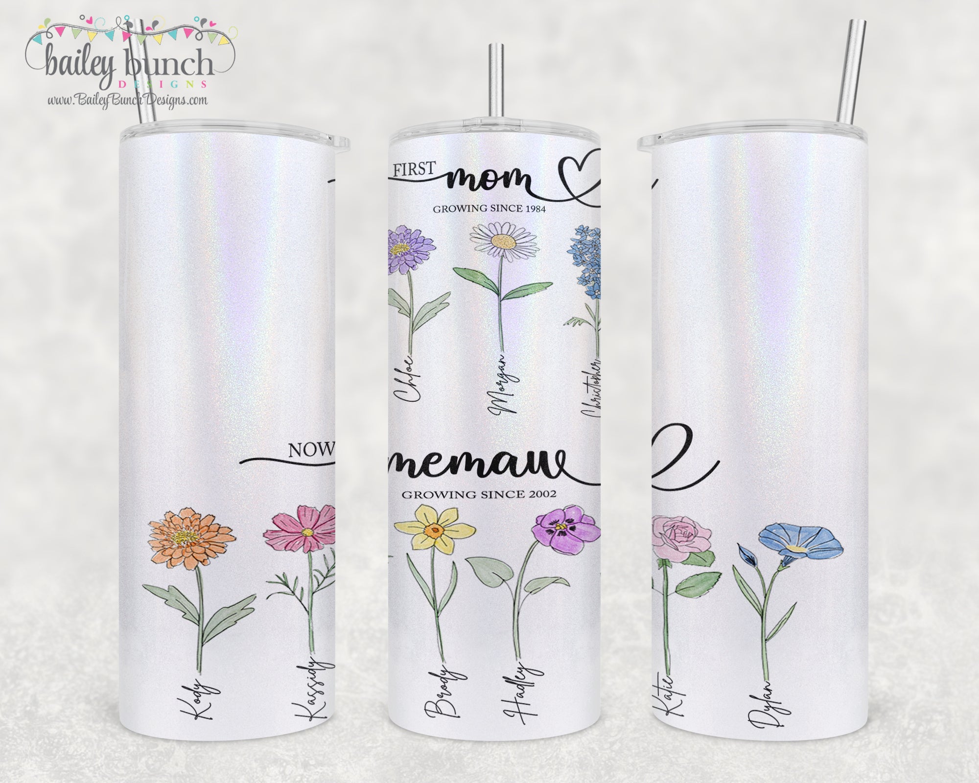 Birth Flowers First Mom Now Grandma Shimmer Glitter Tumbler TUMBLERBIRTHFL0520