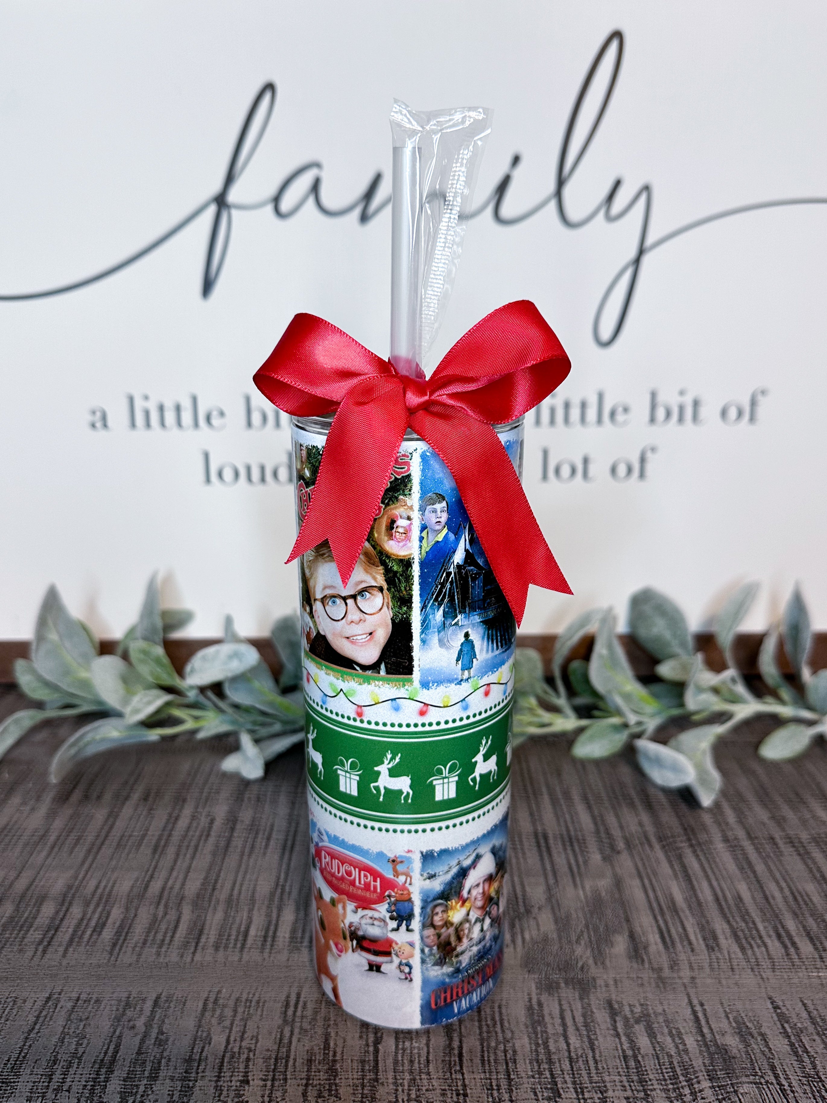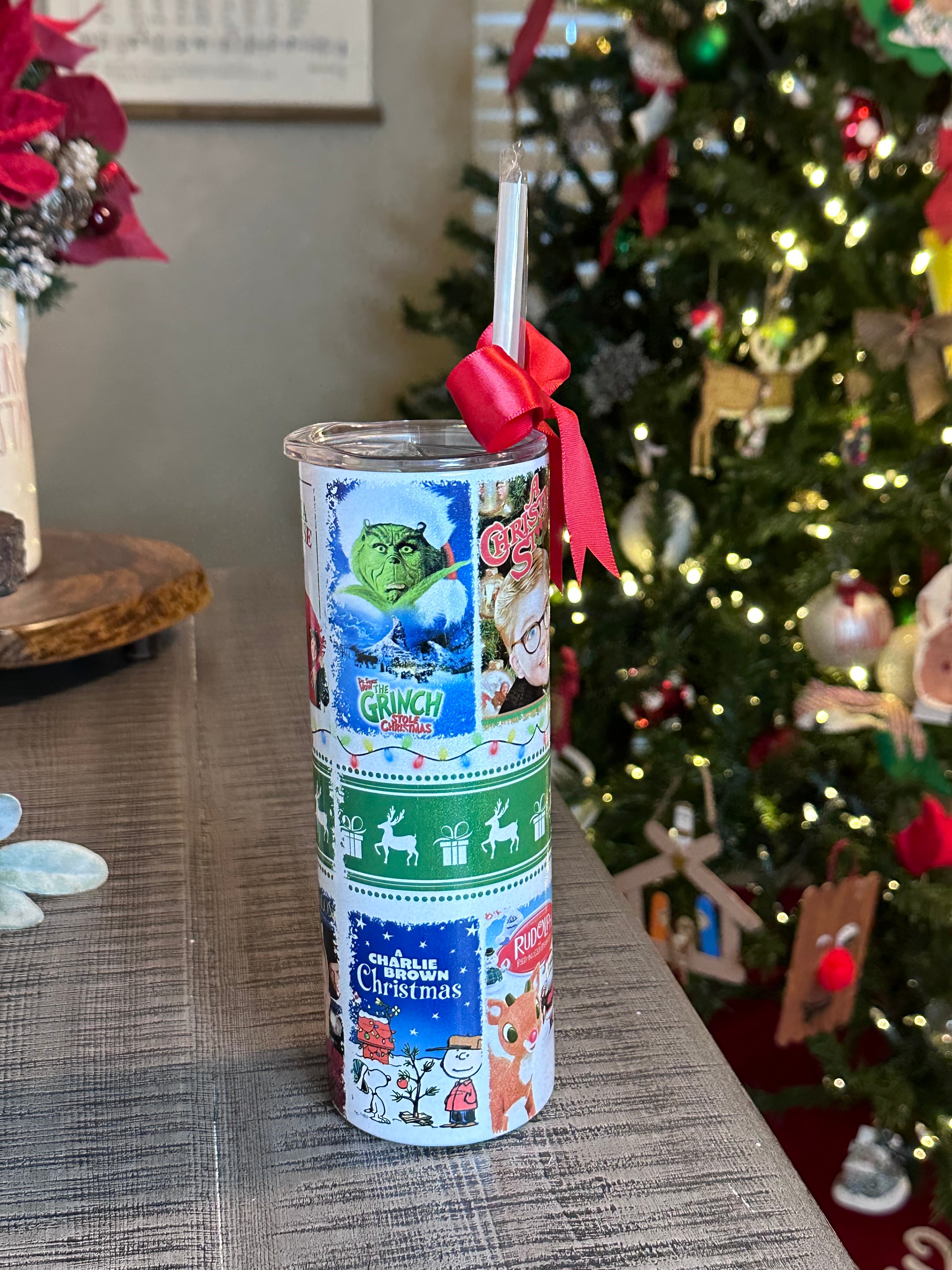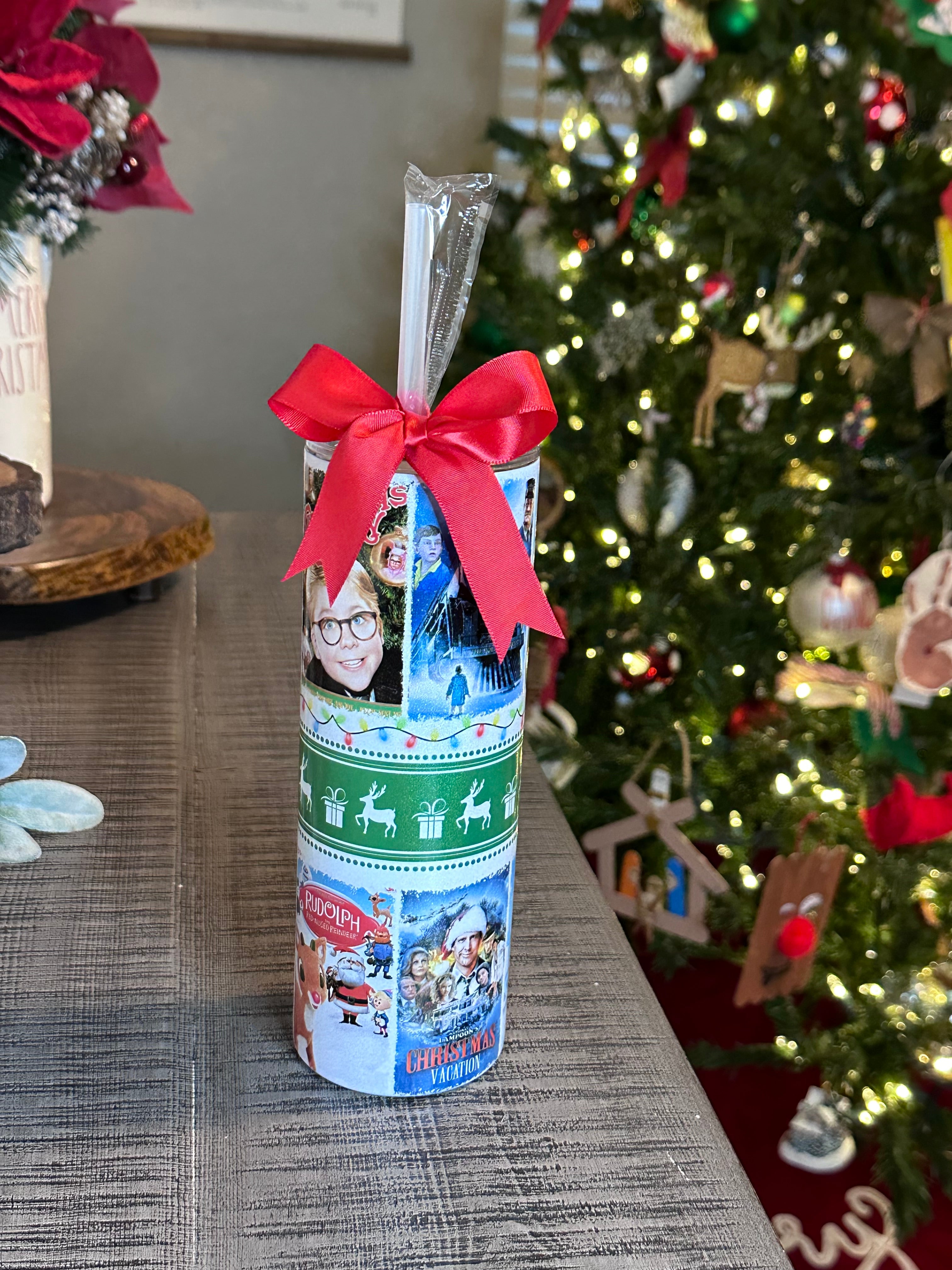 CHRISTMAS MOVIES GLITTER TUMBLER!