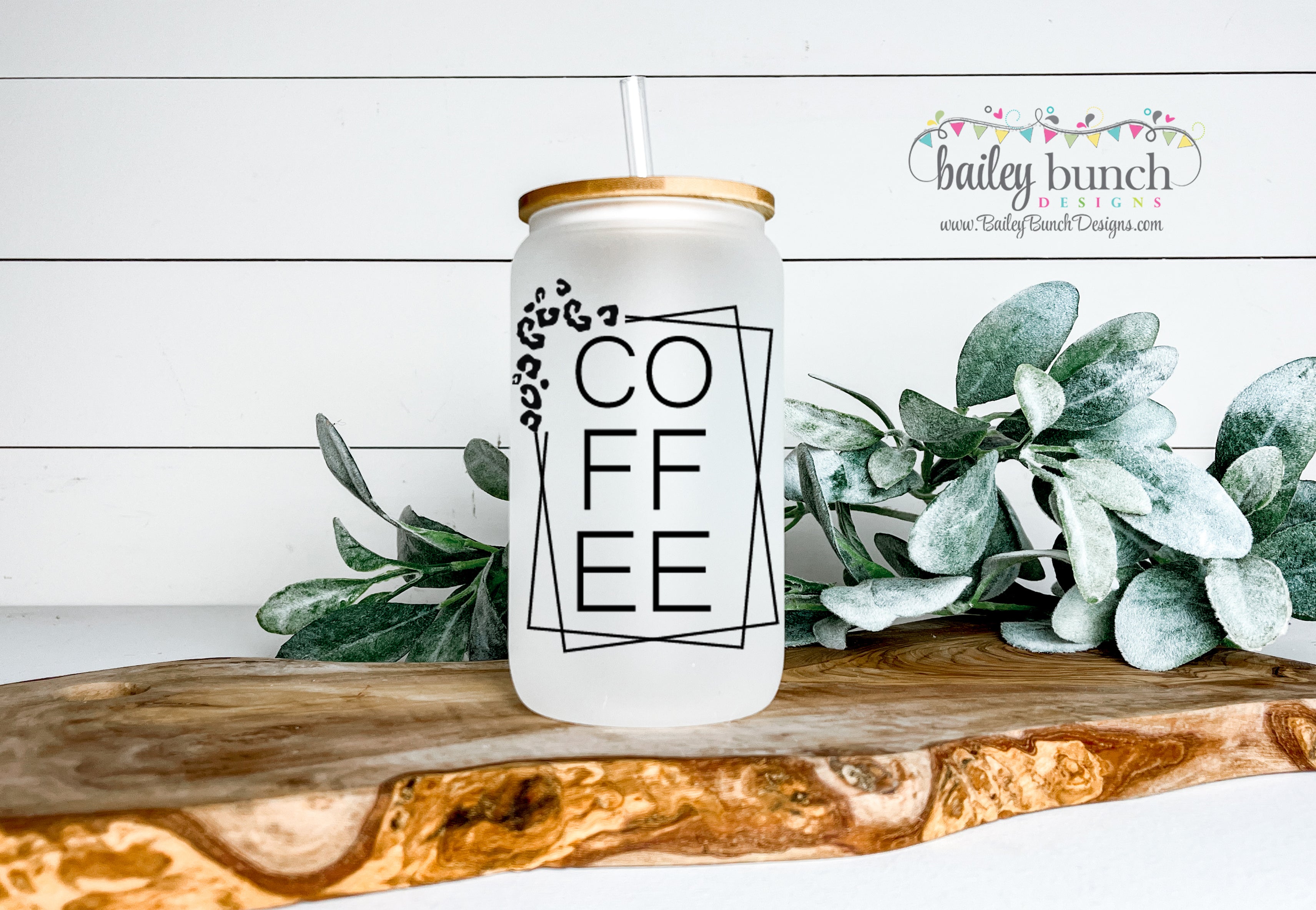 COFFEE Leopard Frosted Glass Cup Libbey Can Iced Coffee Tumbler LIBBEYCANCOFFEE0520