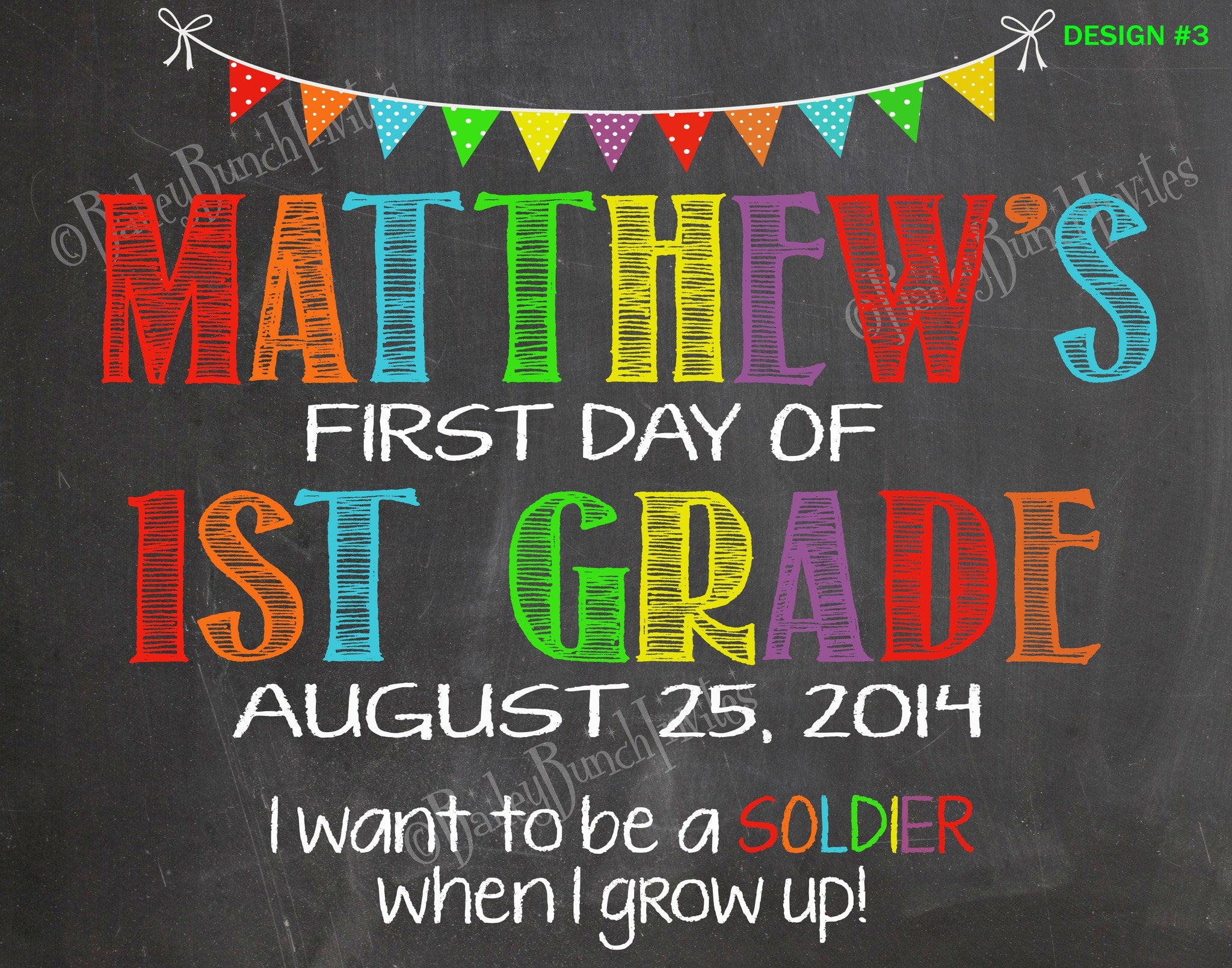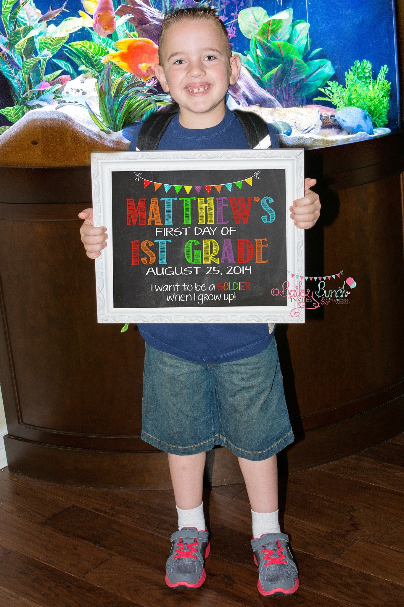 A cute sign to help celebrate your child's first day of school! (any grade) Just in time for the new school year! Start a tradition and take a photo of your child on his/her first day of school every year. Excellent for those precious keepsakes as well