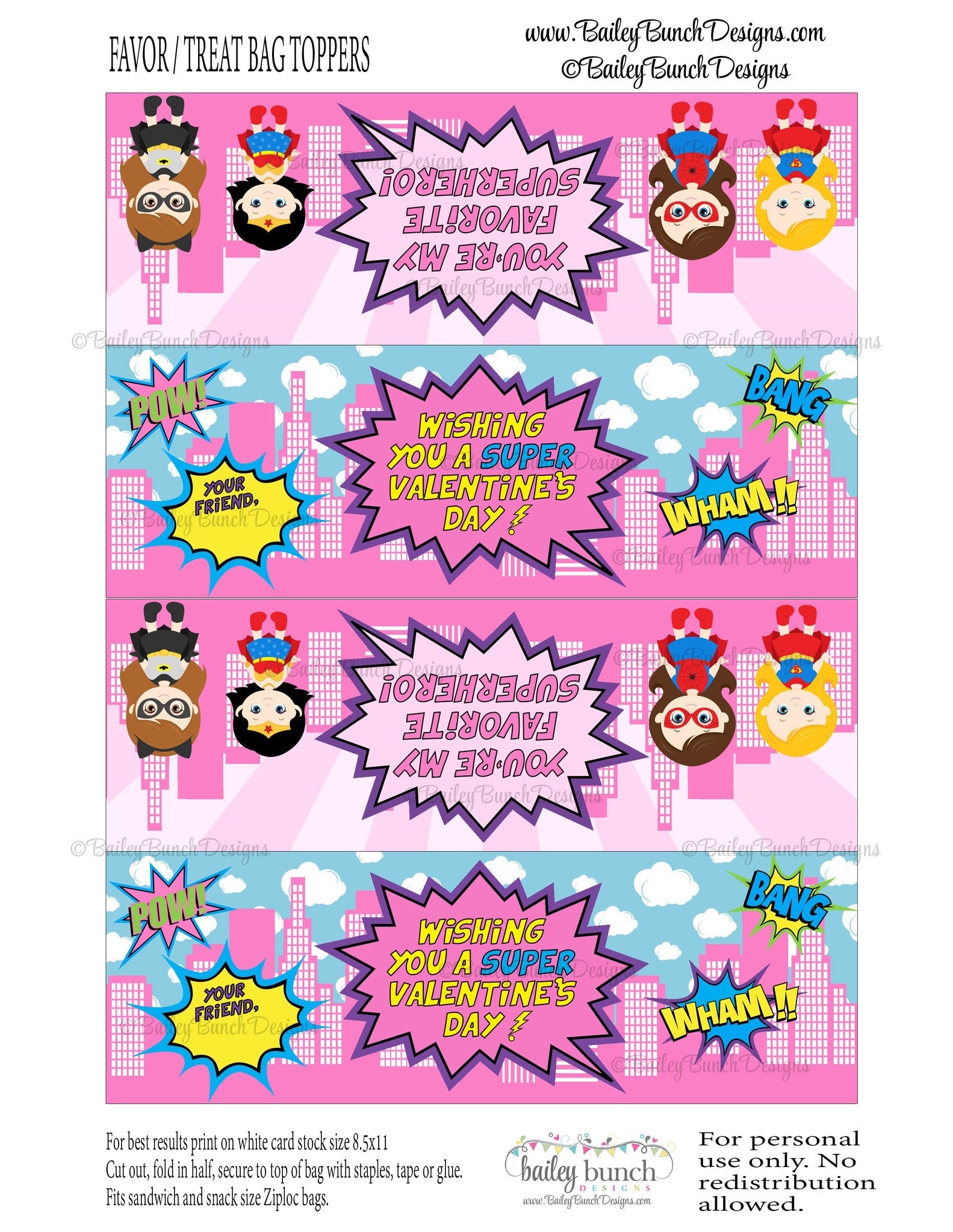 Superheros Valentine Bag Toppers, Girl PINK Superhero Valentines IDVDAYHEROGIRLPINK0520