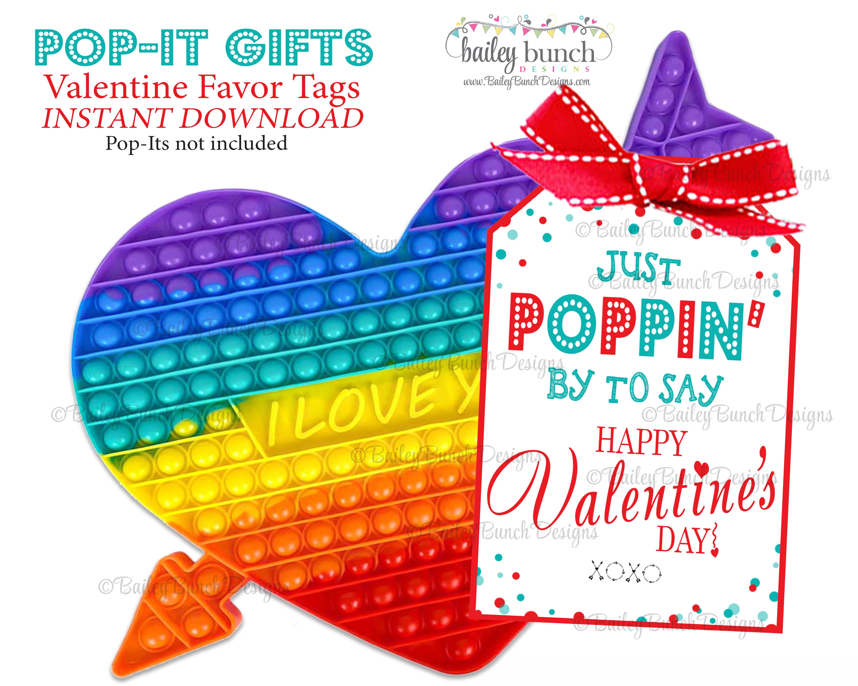 Valentine RED Pop It Fidget Gift Tags, Valentines Gifts, Red Valentine TAGS - Just poppin' by to say Happy Valentines Day - INSTANT DOWNLOAD