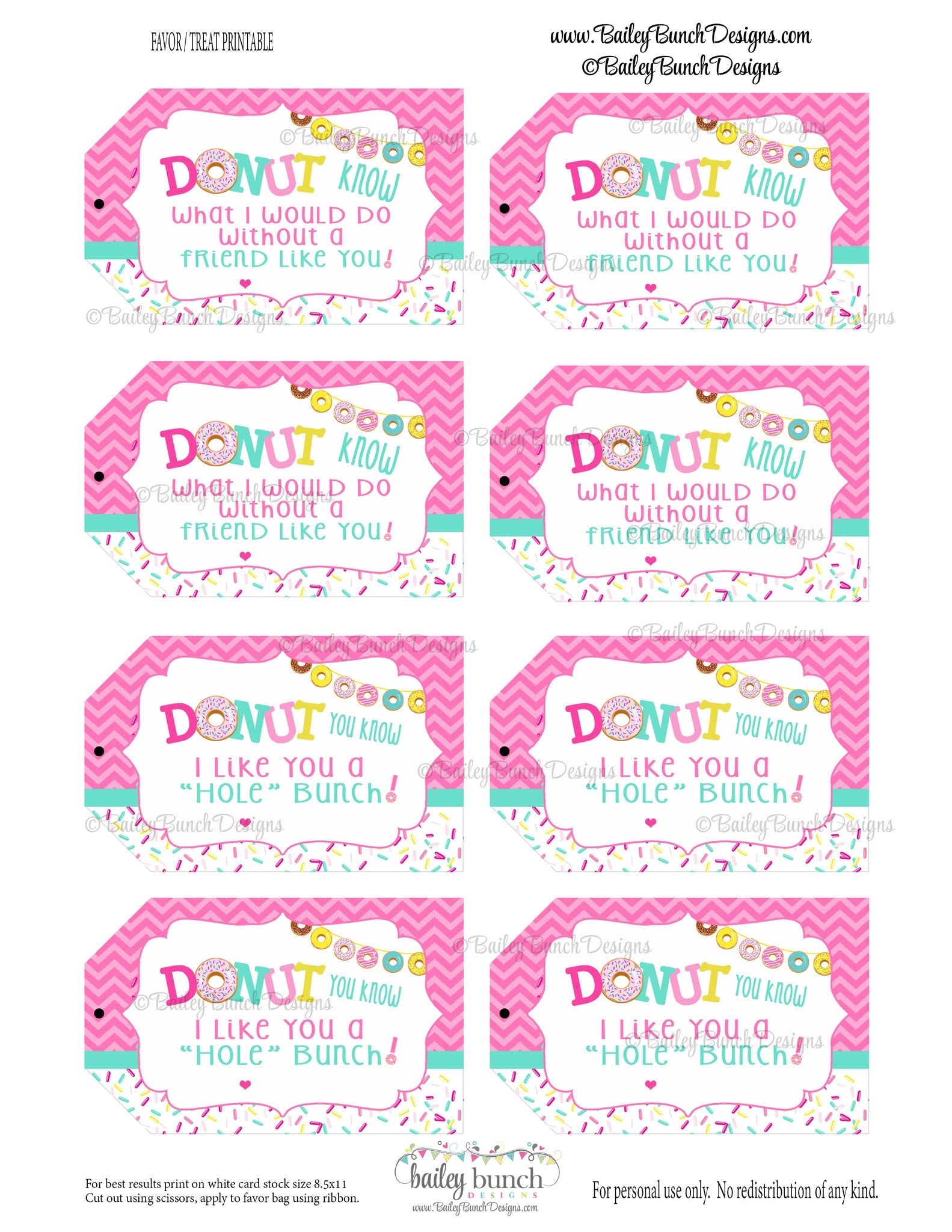 Donut Valentine Treat Tags, Valentines - 2 DESIGNS!! INSTANT DOWNLOAD