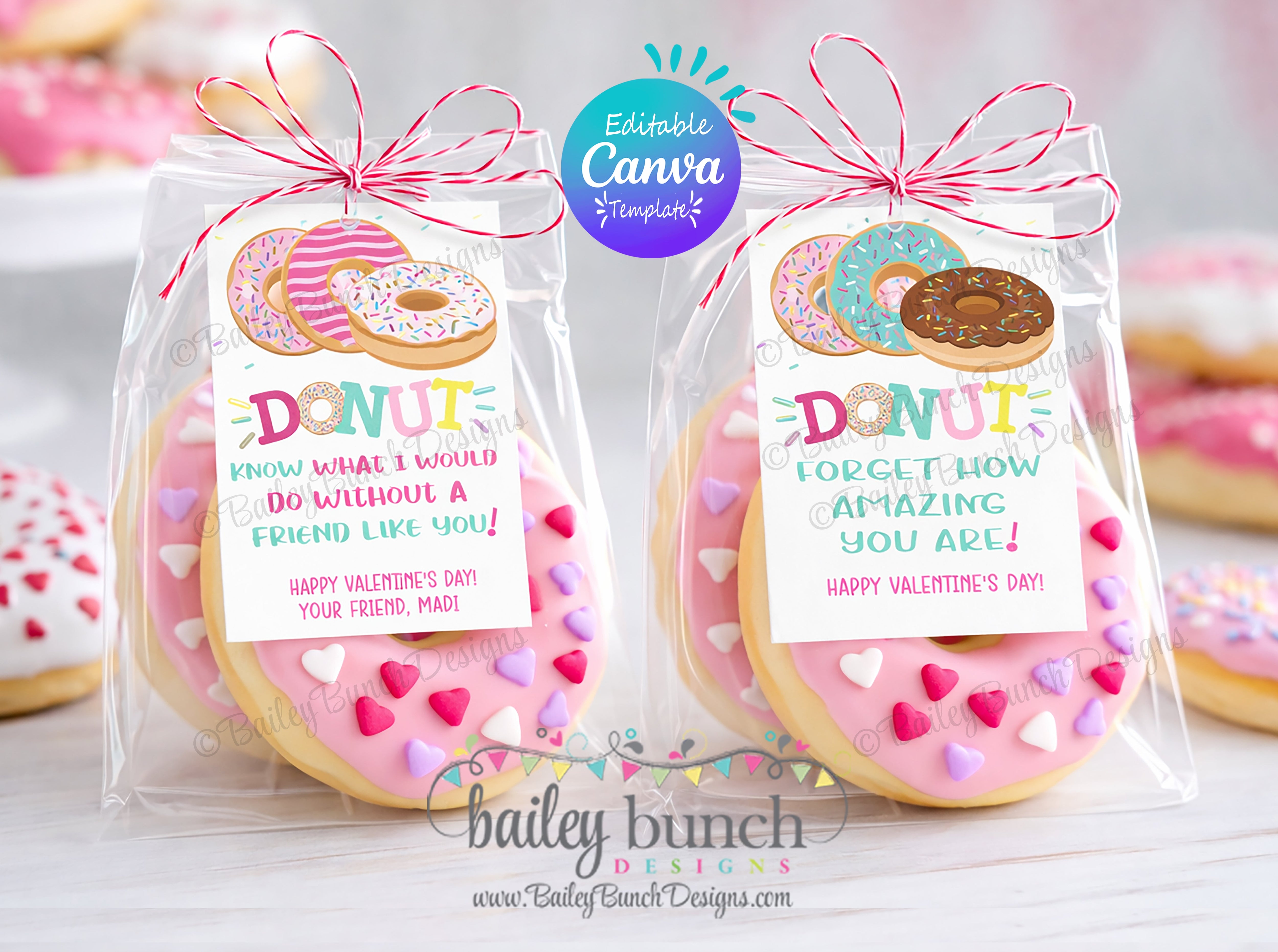Looking for a super cute and easy kid's valentine? Look no further! This EDITABLE CANVA TEMPLATE Printable adorable Donut Kids Valentine are too fun to pass up! This kids valentine printable comes in 2 different designs and 2 different wording options.