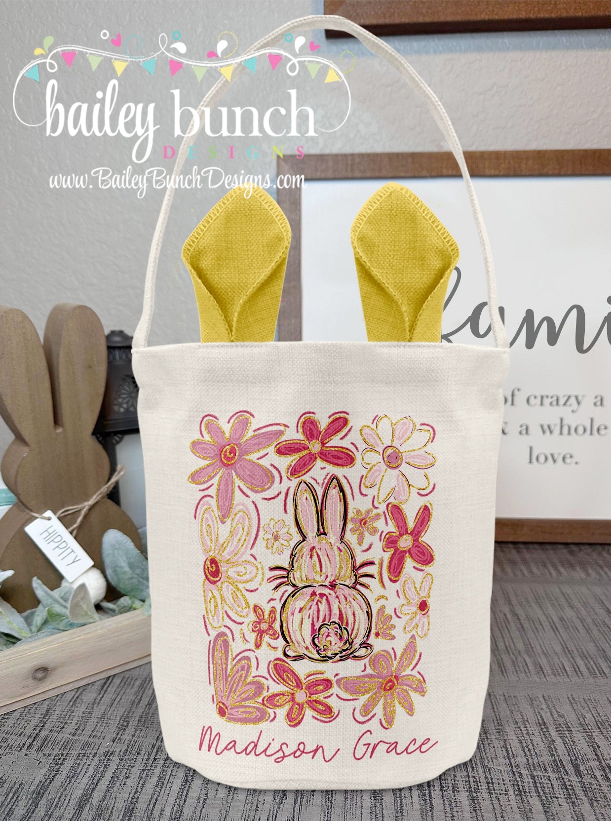 Floral Easter Bunny Basket Personalized BASKETBUNNYF0520