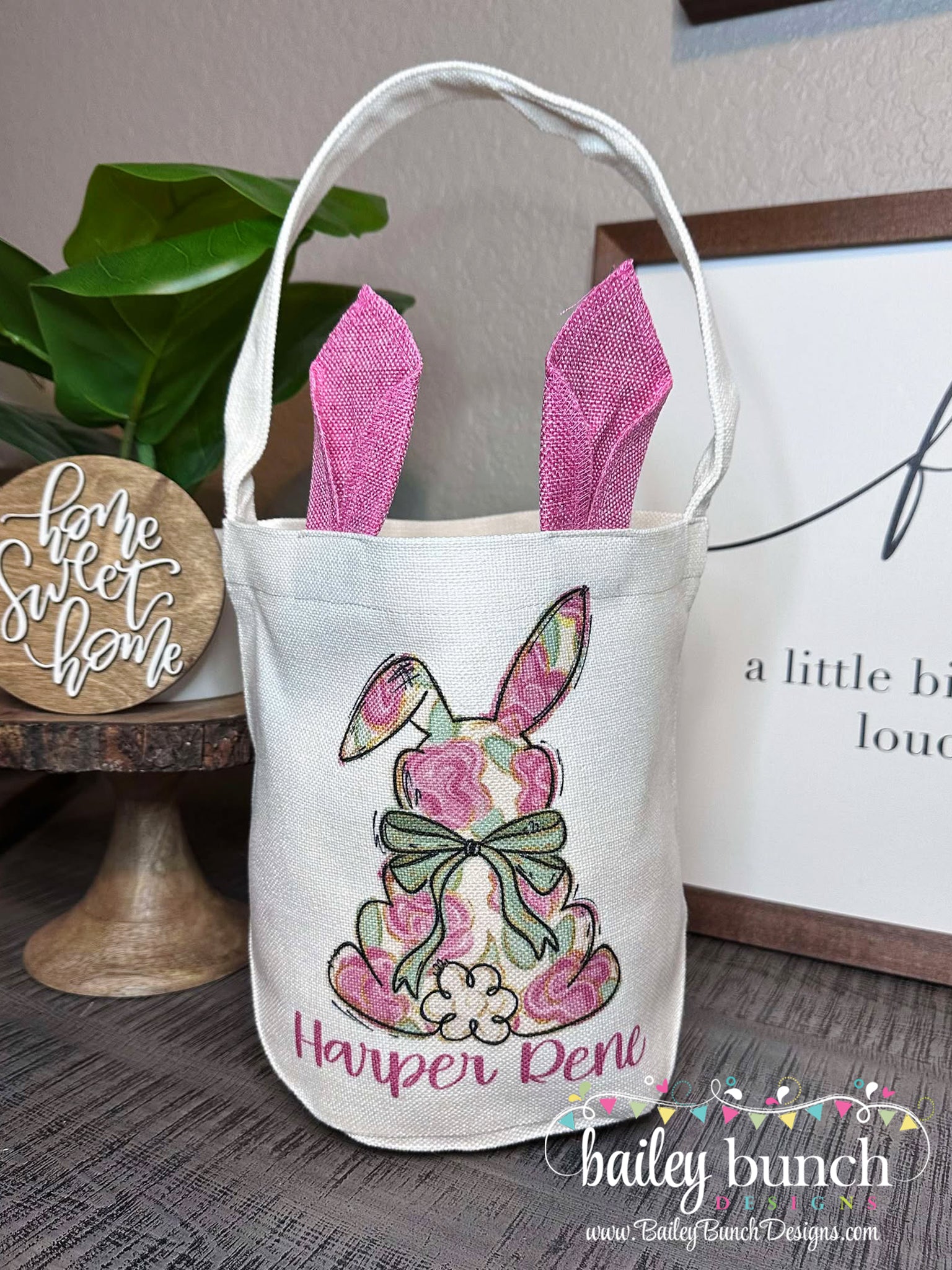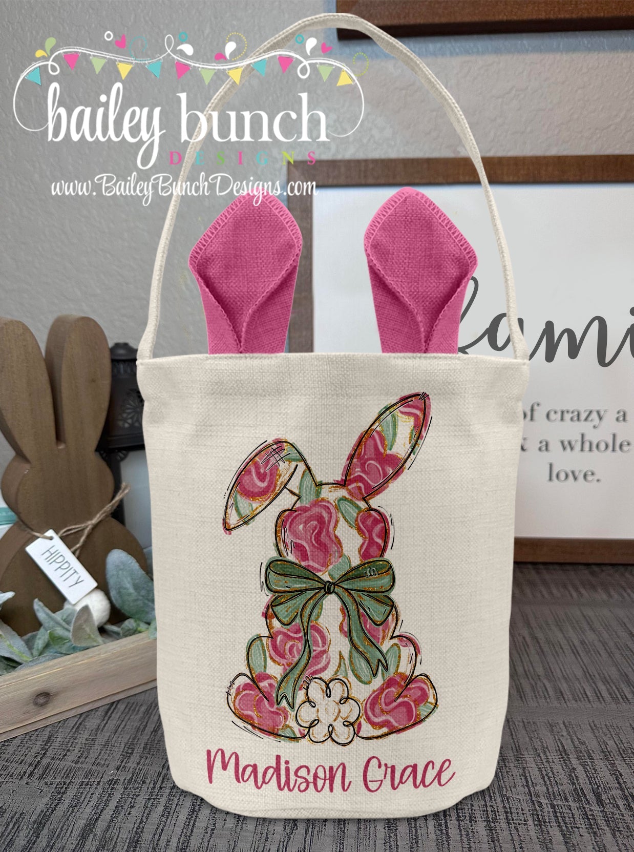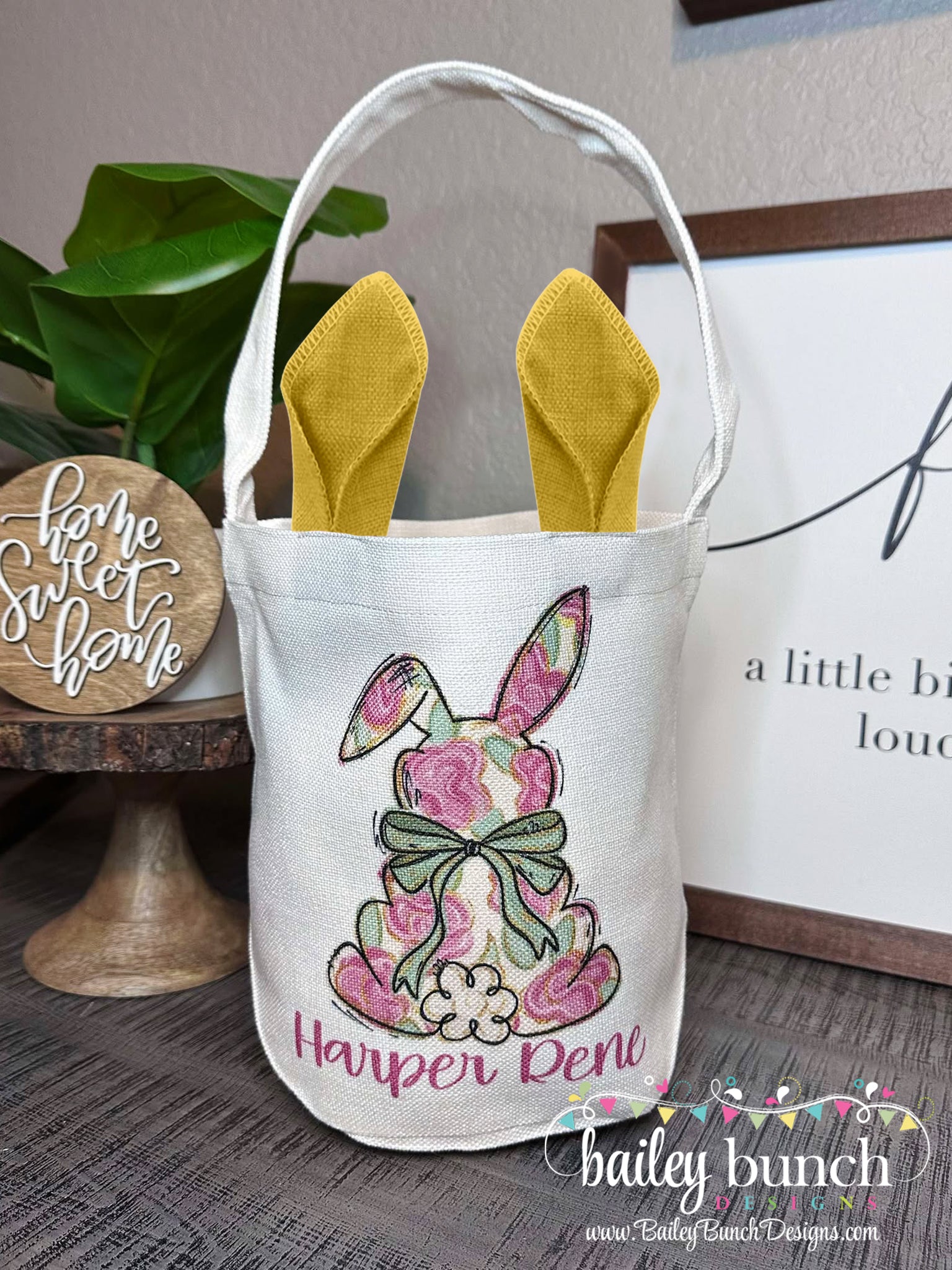 Floral Gold Easter Basket Bunny Ears Basket Personalized BASKETFLORALG05202