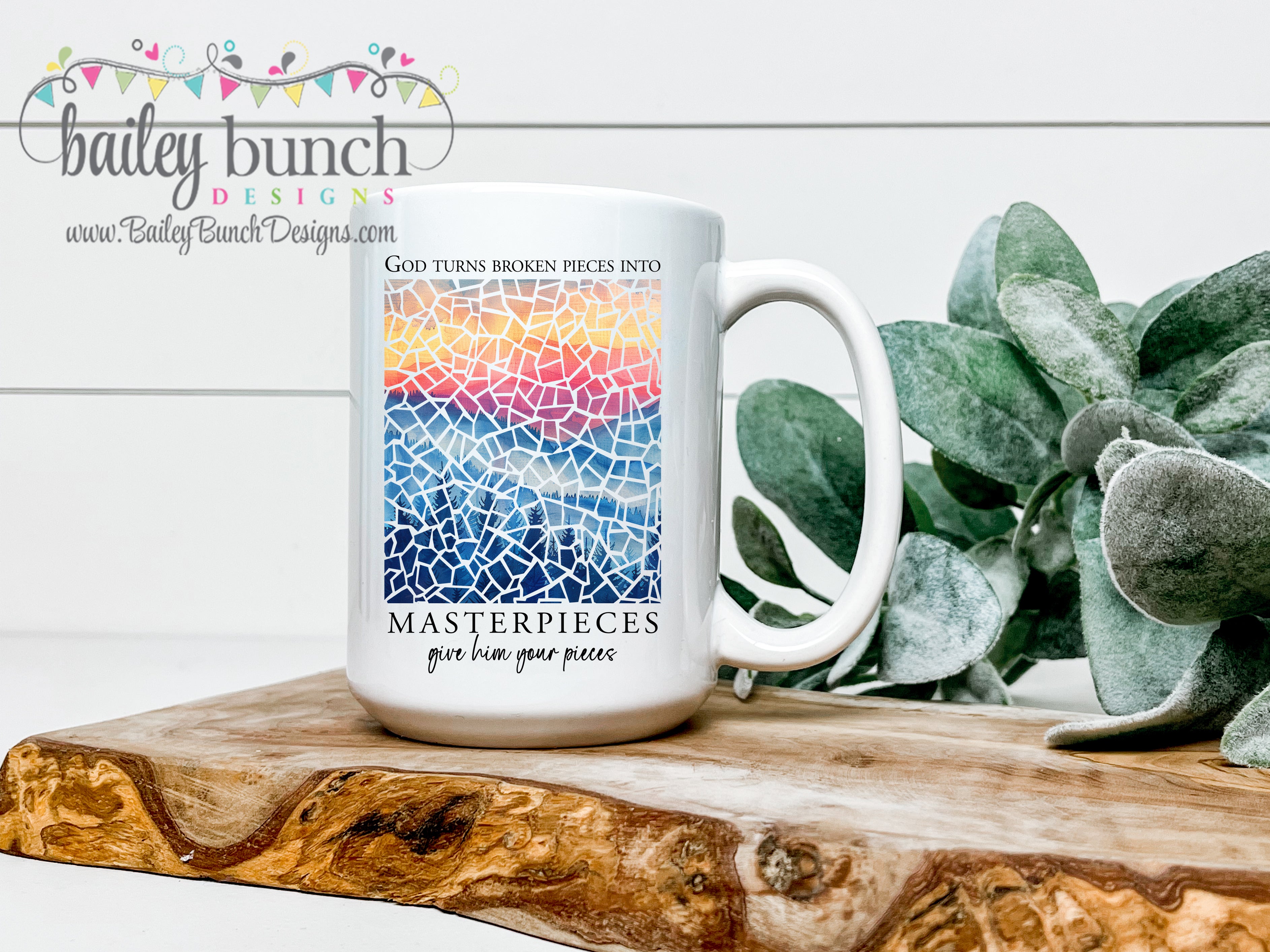 God Turns Broken Pieces into Masterpieces Coffee Mug!