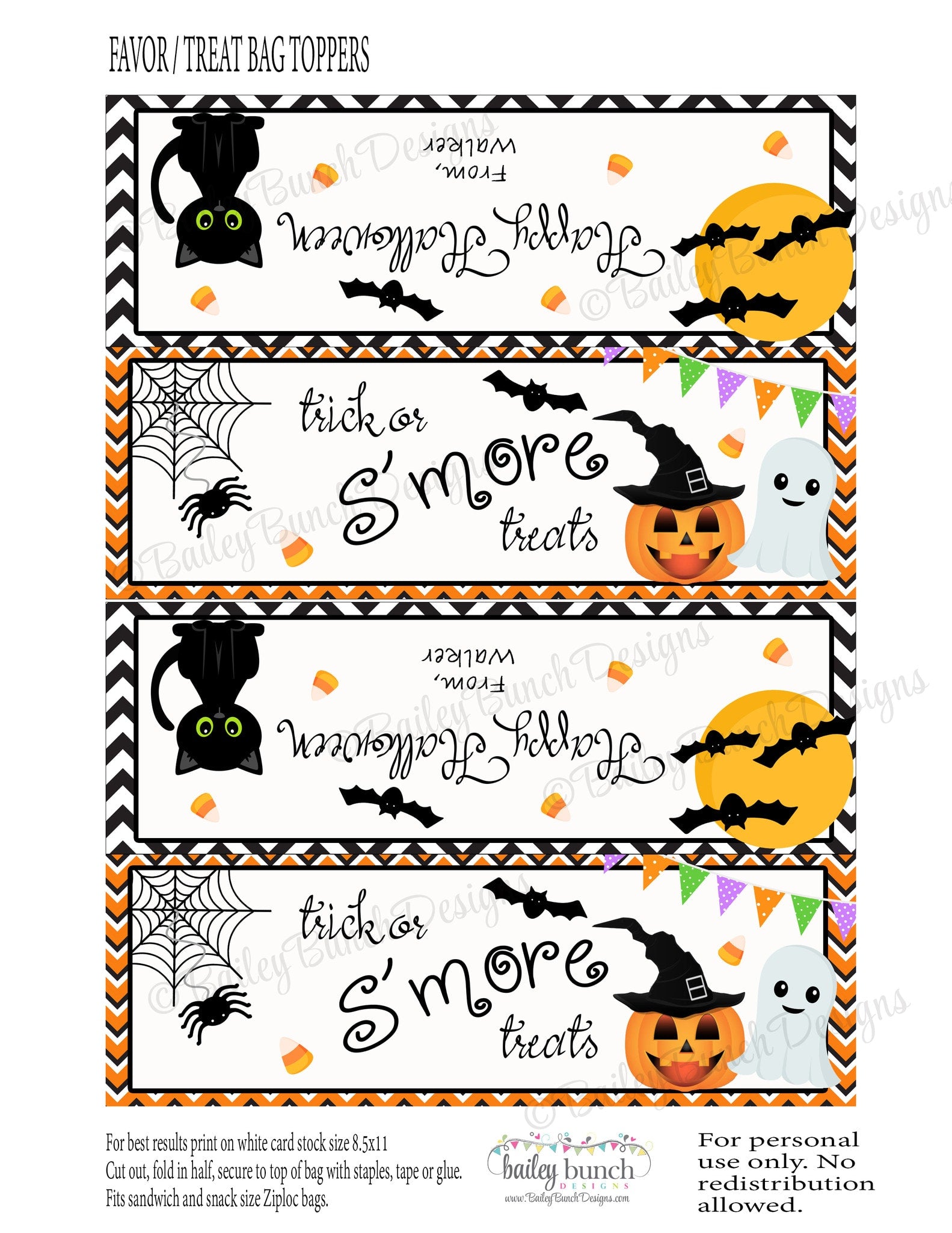 Halloween S'mores, Spooky S'mores, Halloween Smores, Halloween Favors Trick or Treat Favors Treat Bag Toppers PERSONALIZED - 2 DESIGNS!!