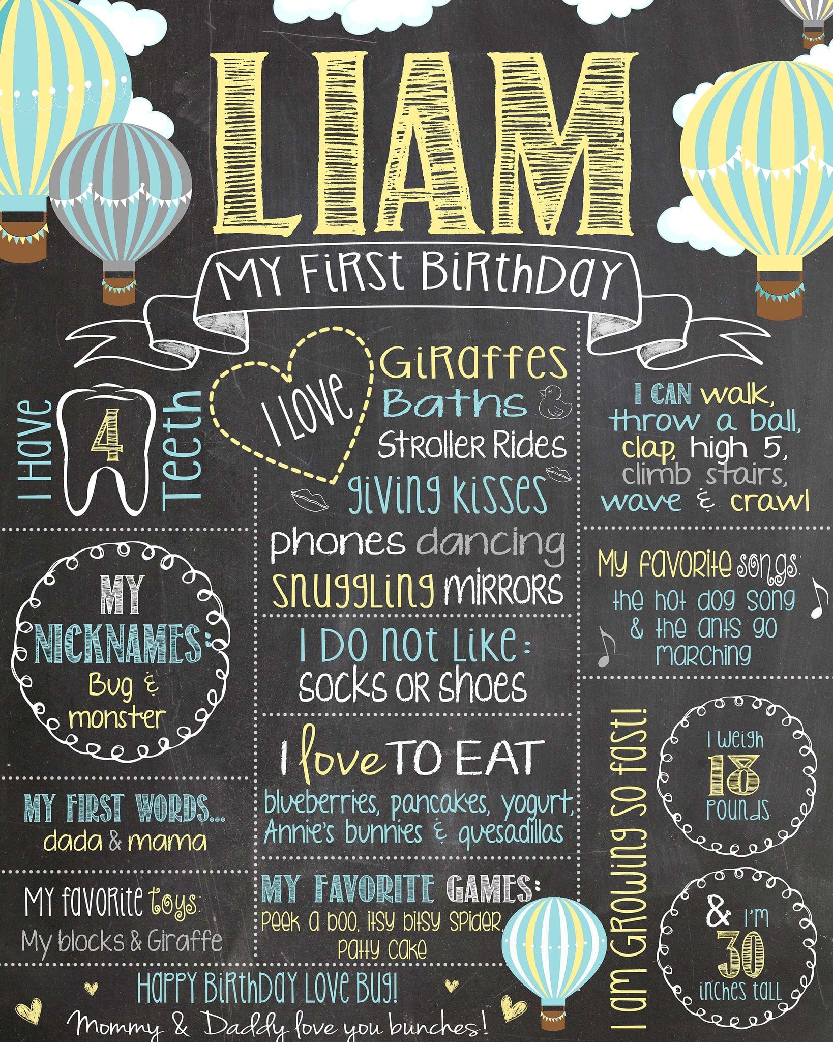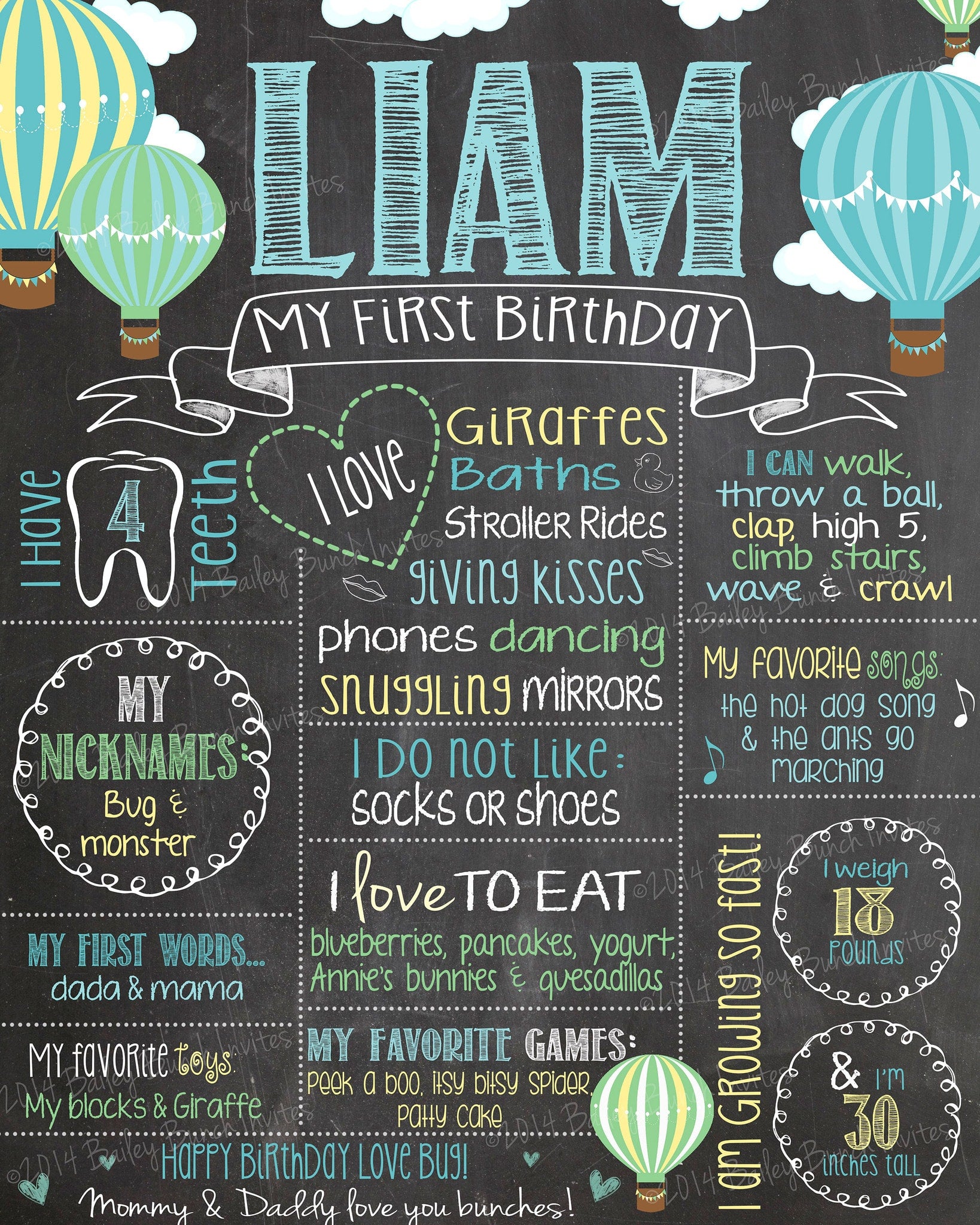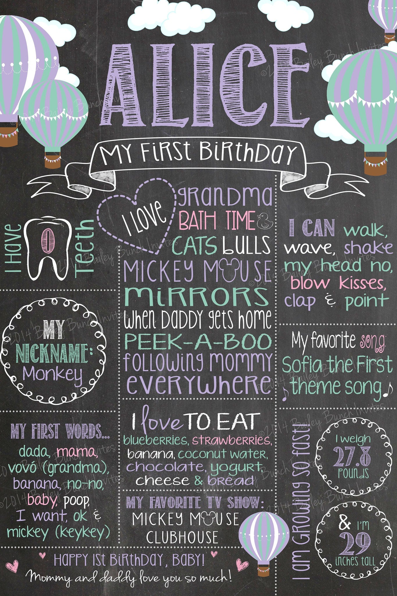 Hot Air Balloon Birthday Chalkboard Poster Sign - Lots of Colors HOTAIRBALLOON02