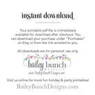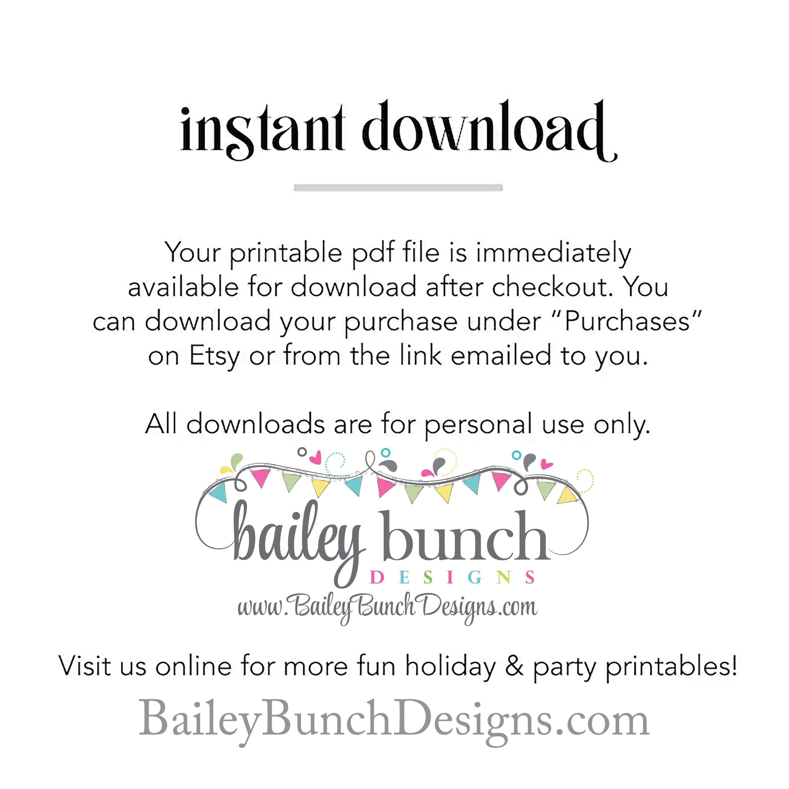 IMAGES AND DESIGNS were created by Bailey Bunch Designs and are protected under domestic and international copyright laws according to 17 U.S.C. Section 501. Some clipart images of used in the designs are free and not being sold. Clipart copyright is held by original owner. Designs are intended for ONE TIME personal use only.