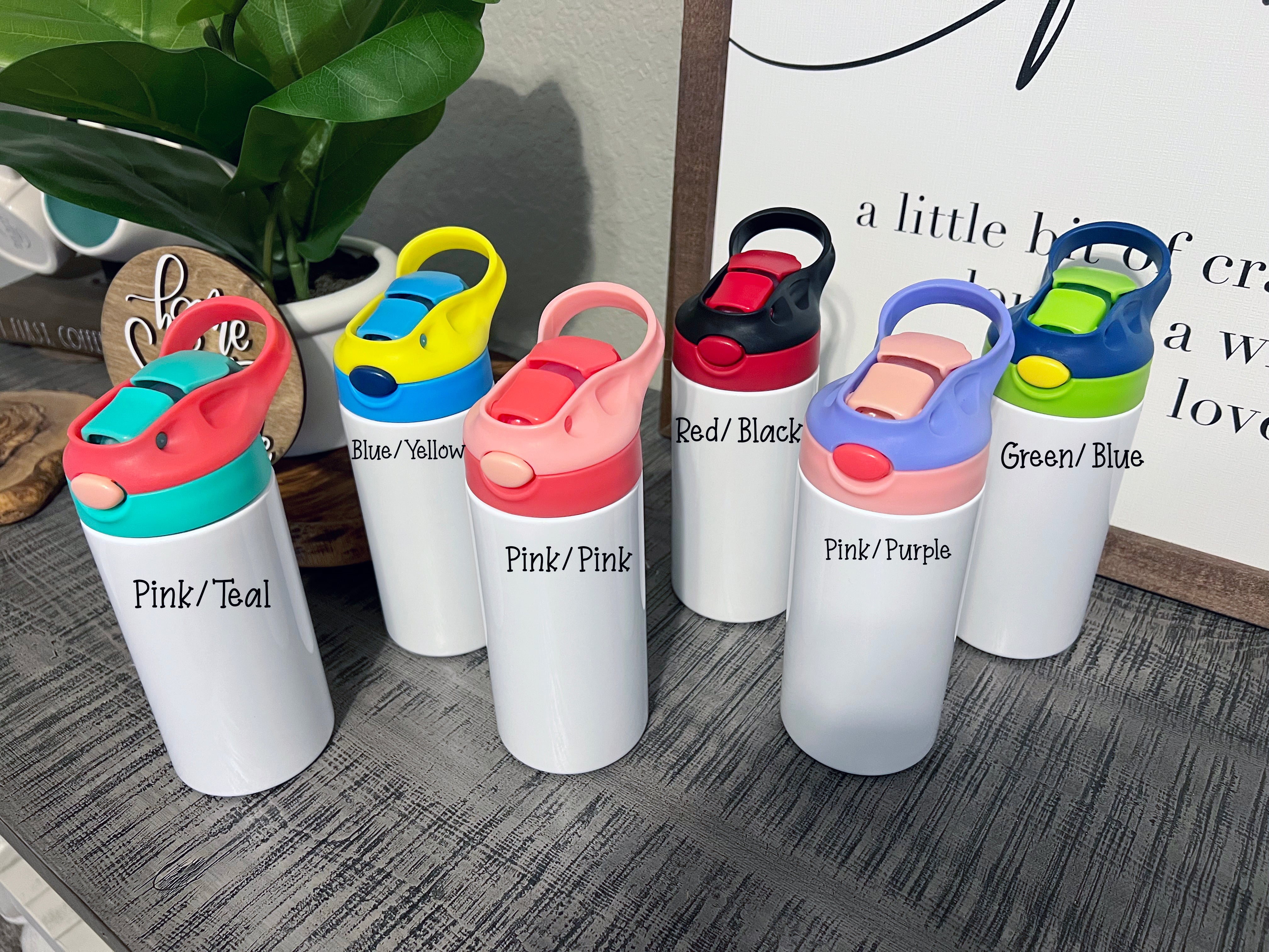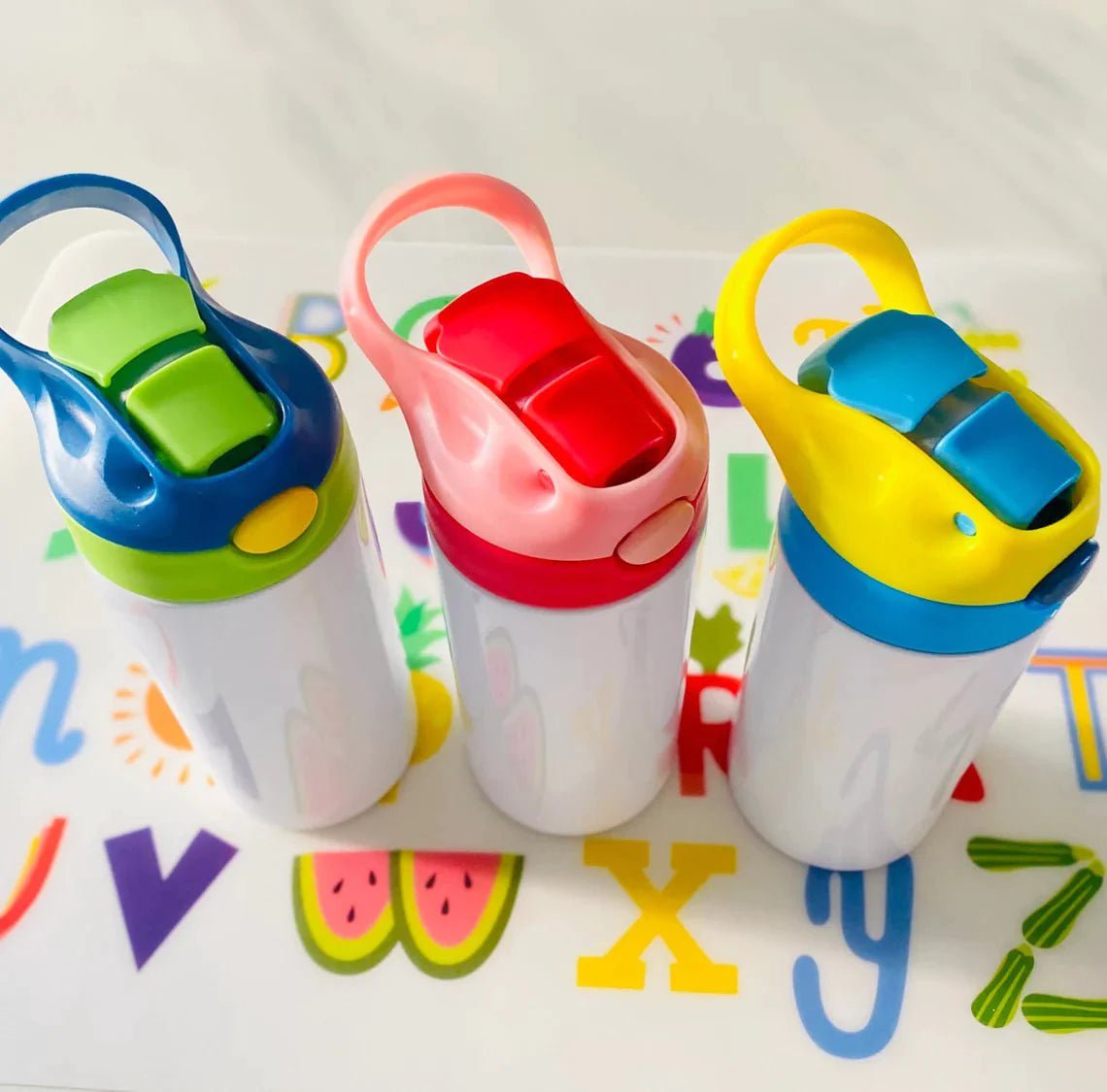 Our 12oz Kids Flip Top Tumbler, features stainless steel insulated tumbler with a double-wall vacuum insulation with a Leak-Proof flip-top lid and a Reusable Plastic Straw.