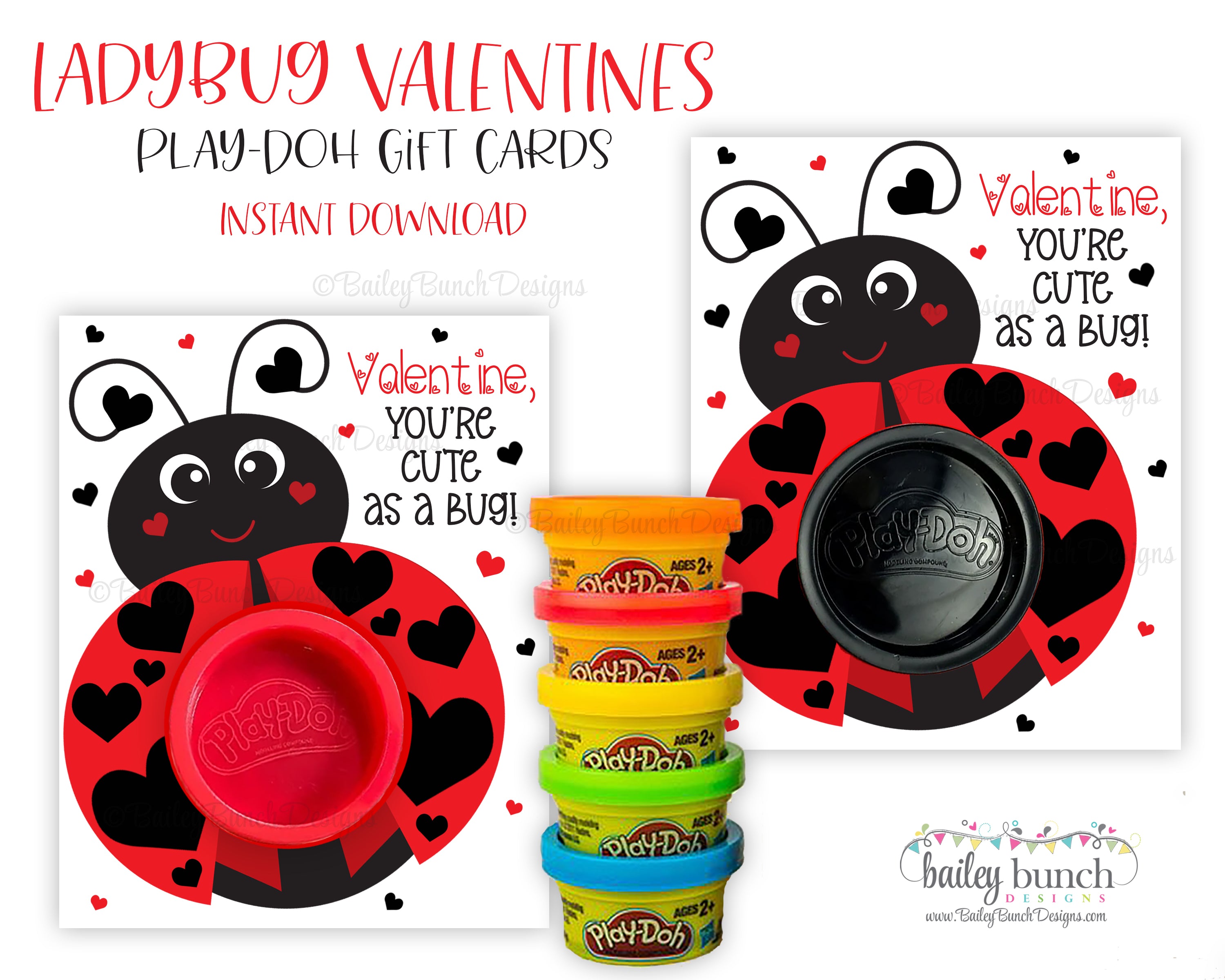 Lady Bug Love Bug PLAY-DOH Valentines - INSTANT DOWNLOAD
