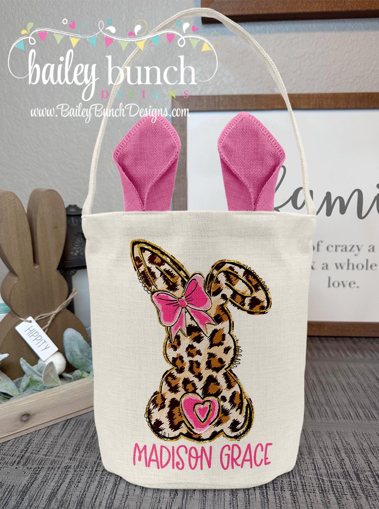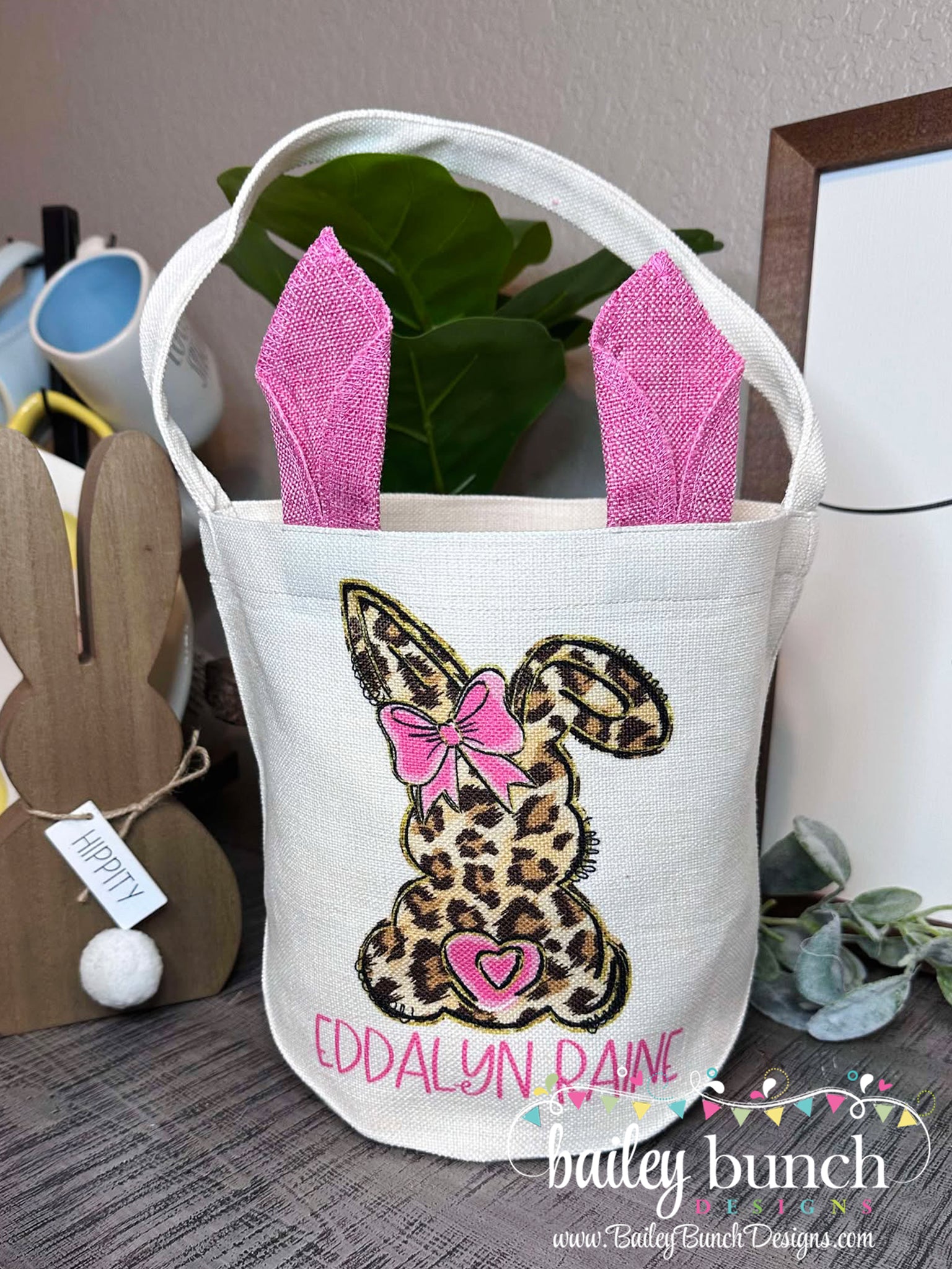 Leopard Easter Bunny Basket Personalized BASKETL0BOW520