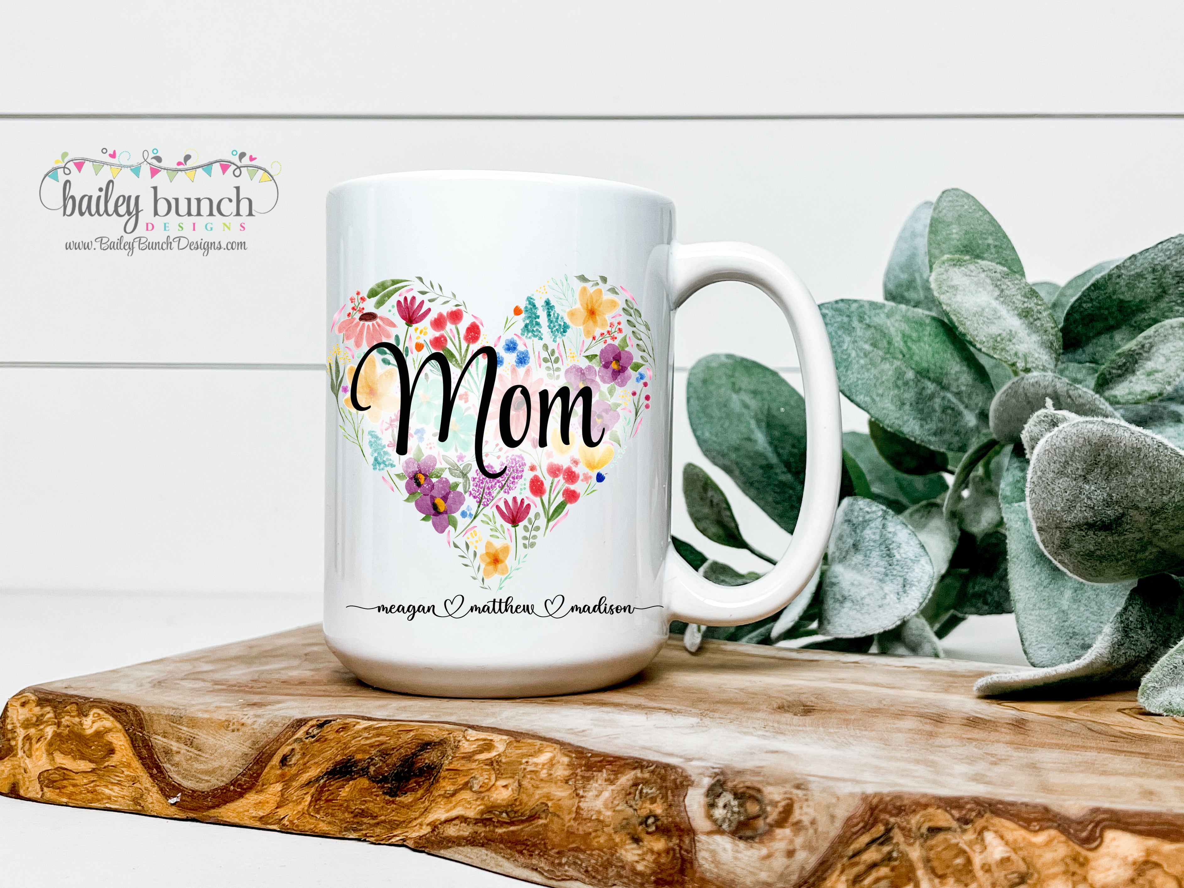 Mother's Day Floral Heart Mom Script Coffee Mug