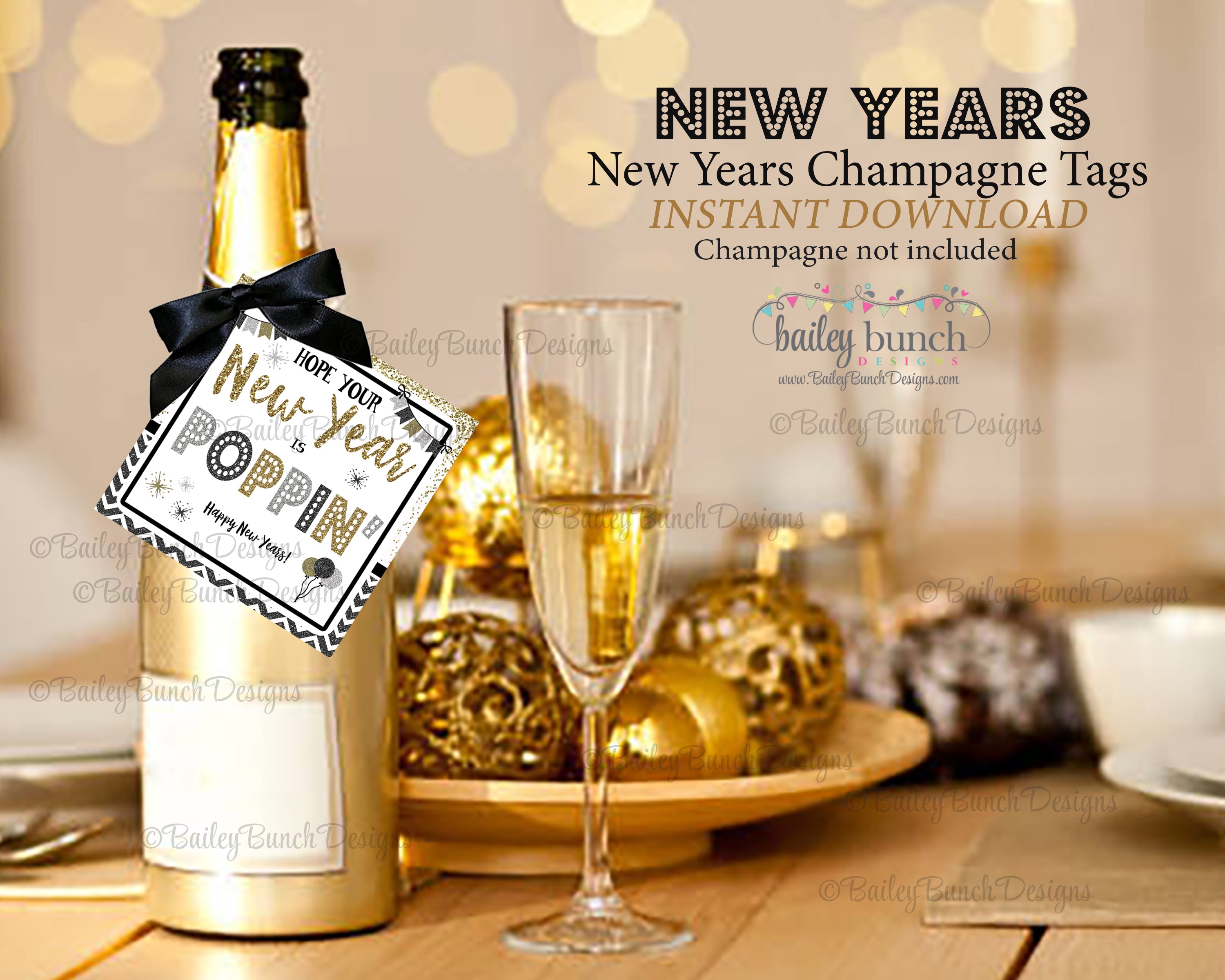 New Years Pop It Champagne Gift Tags, New Year Gift Labels, Happy New Year - INSTANT DOWNLOAD IDNY520