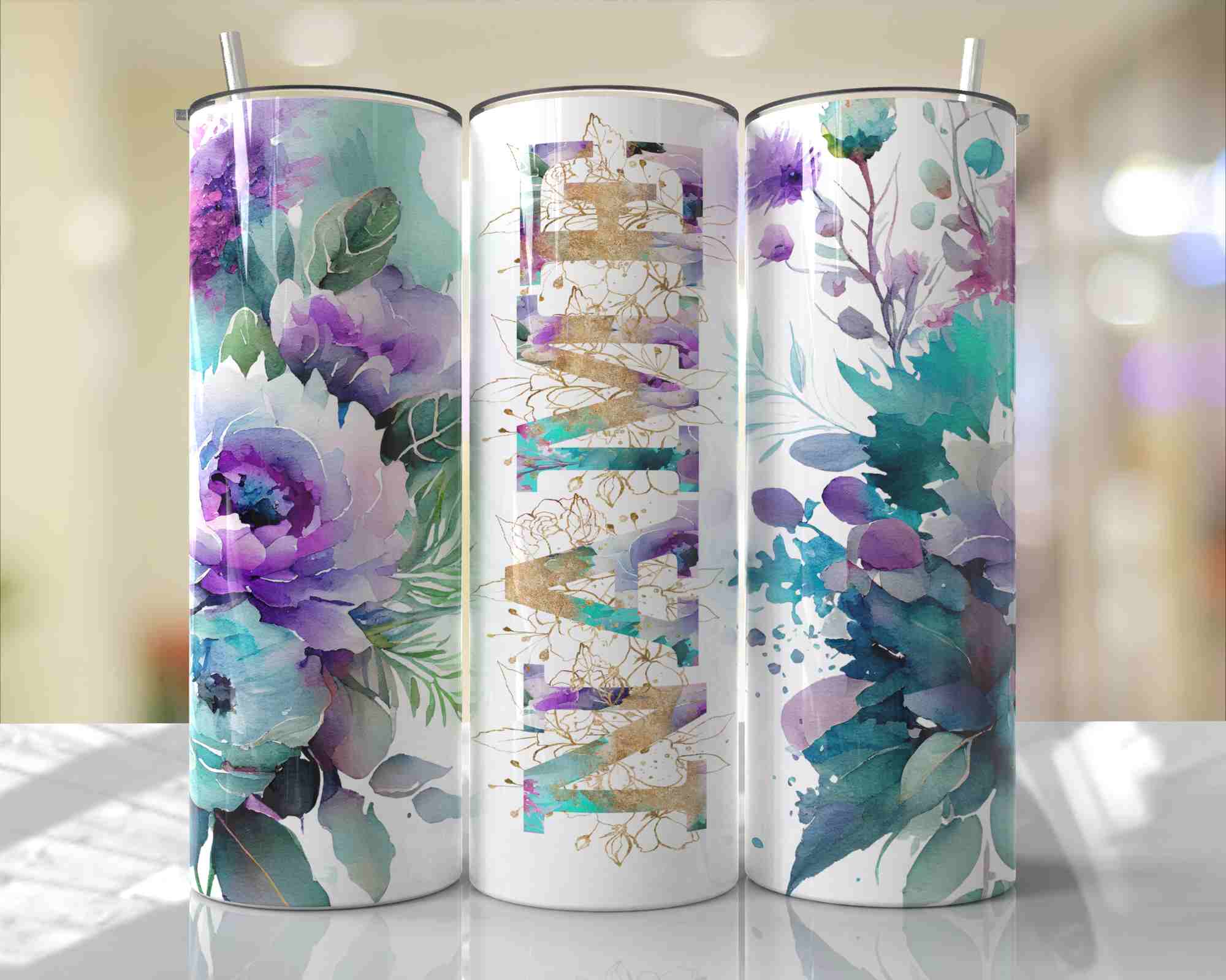 Purple & Teal Floral Name Mother's Day Shimmer Glitter Tumbler TUMBP0520