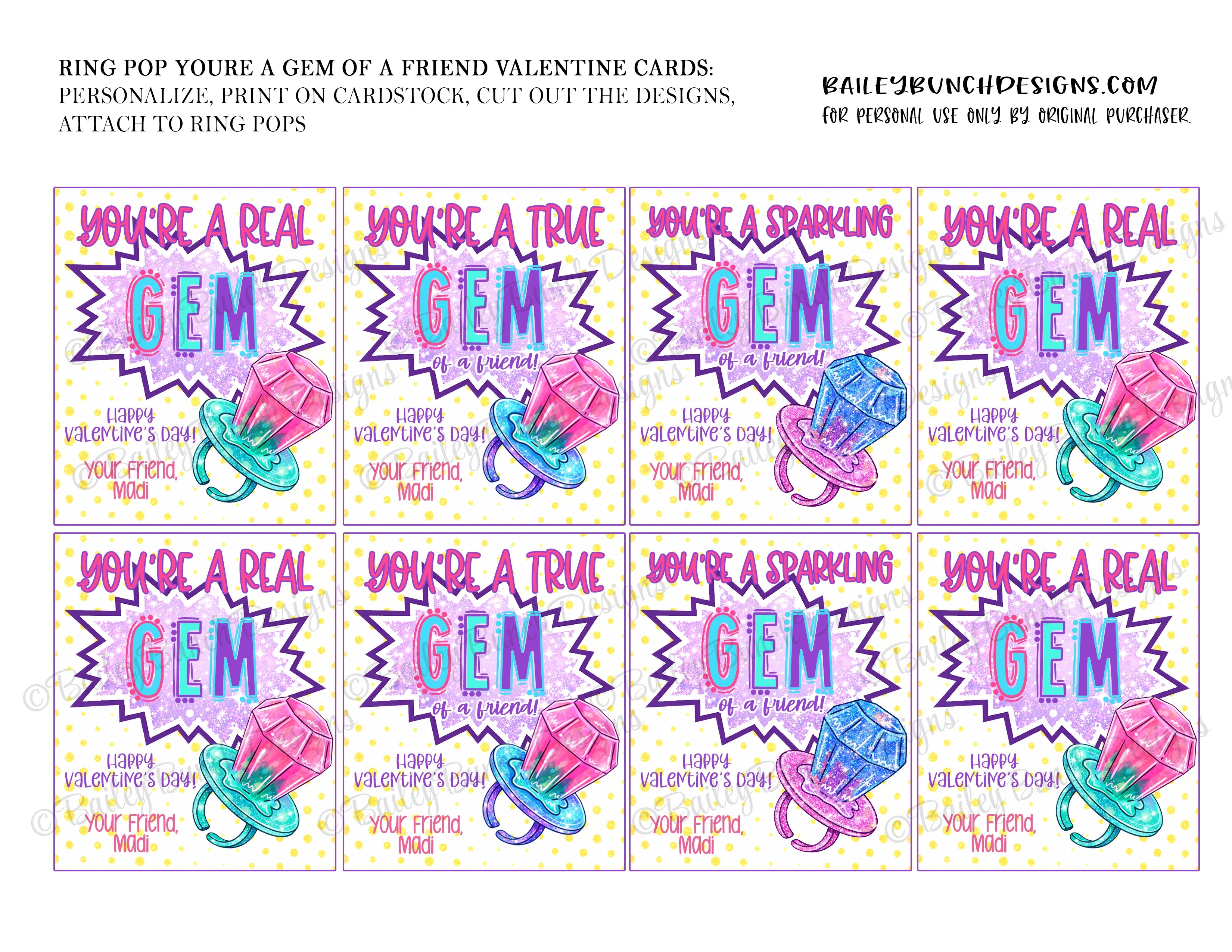Ring Pop Valentine Printable Valentine Card Kids Valentine Ring Pop Valentine Card Valentine’s Day Card Instant Download Digital Download Classroom Valentine School Valentines Treat Tag Gem Ring Pop Treat Tag Valentine Printable DIY Valentine You're a real GEM of a friend Printable Classroom Valentine Kid Valentine Cards School Valentines Favor Tag Gem Candy Tag Valentine Gift Label You’re a Gem Friendship Valentine Classroom Exchange Card Printable PDF Party Favor Tag Ring Pop Treat Digital PDF Download Holiday Printables