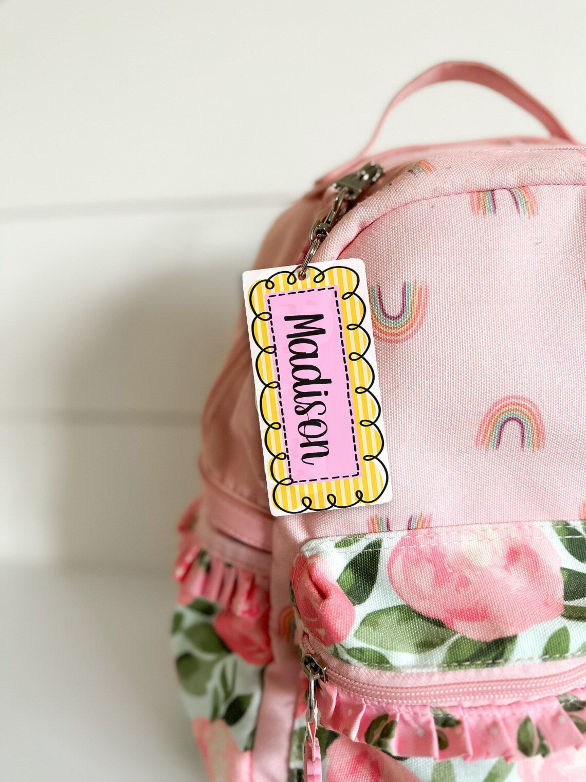 School Backpack Name Tags PINK YELLOW