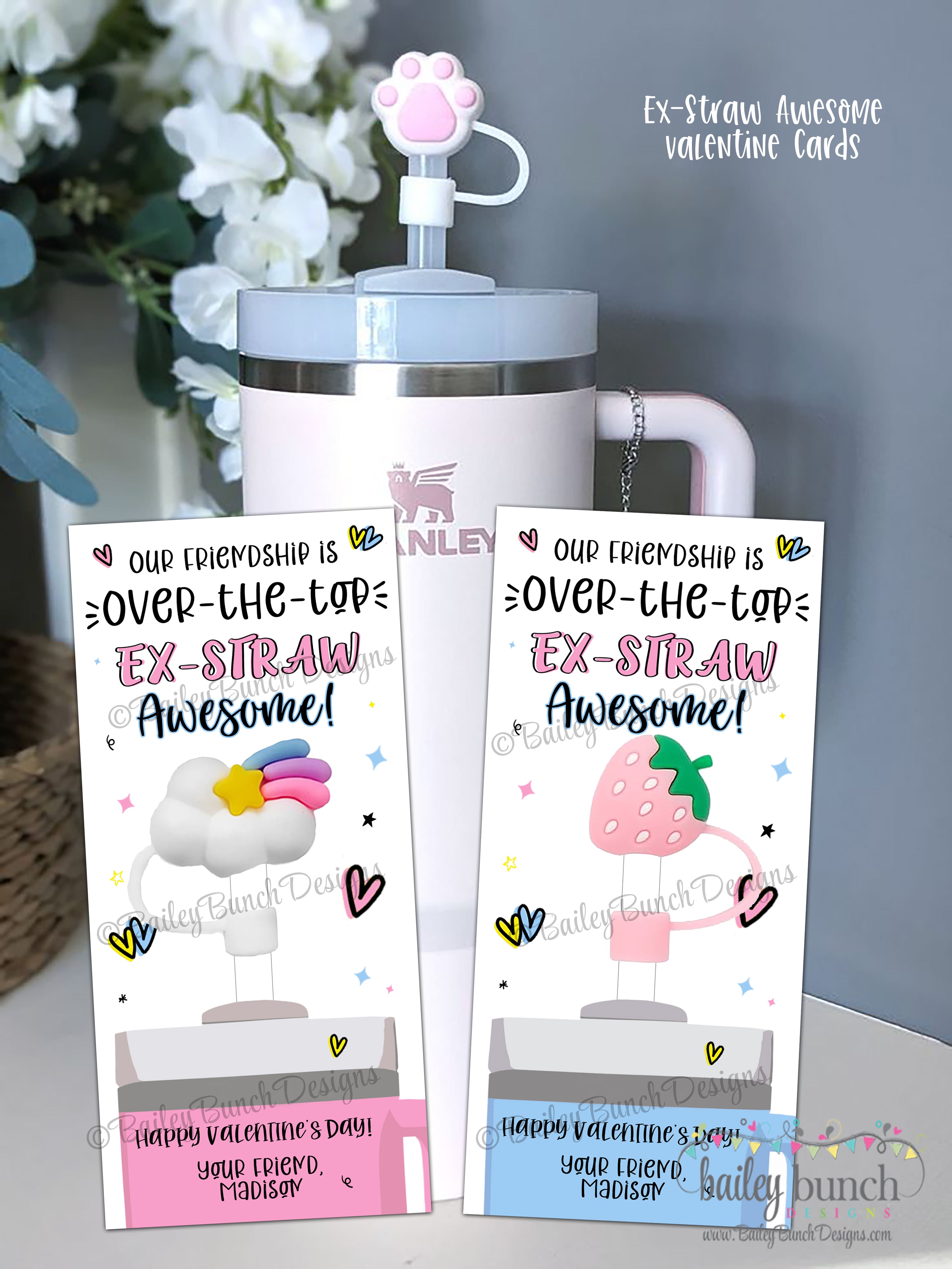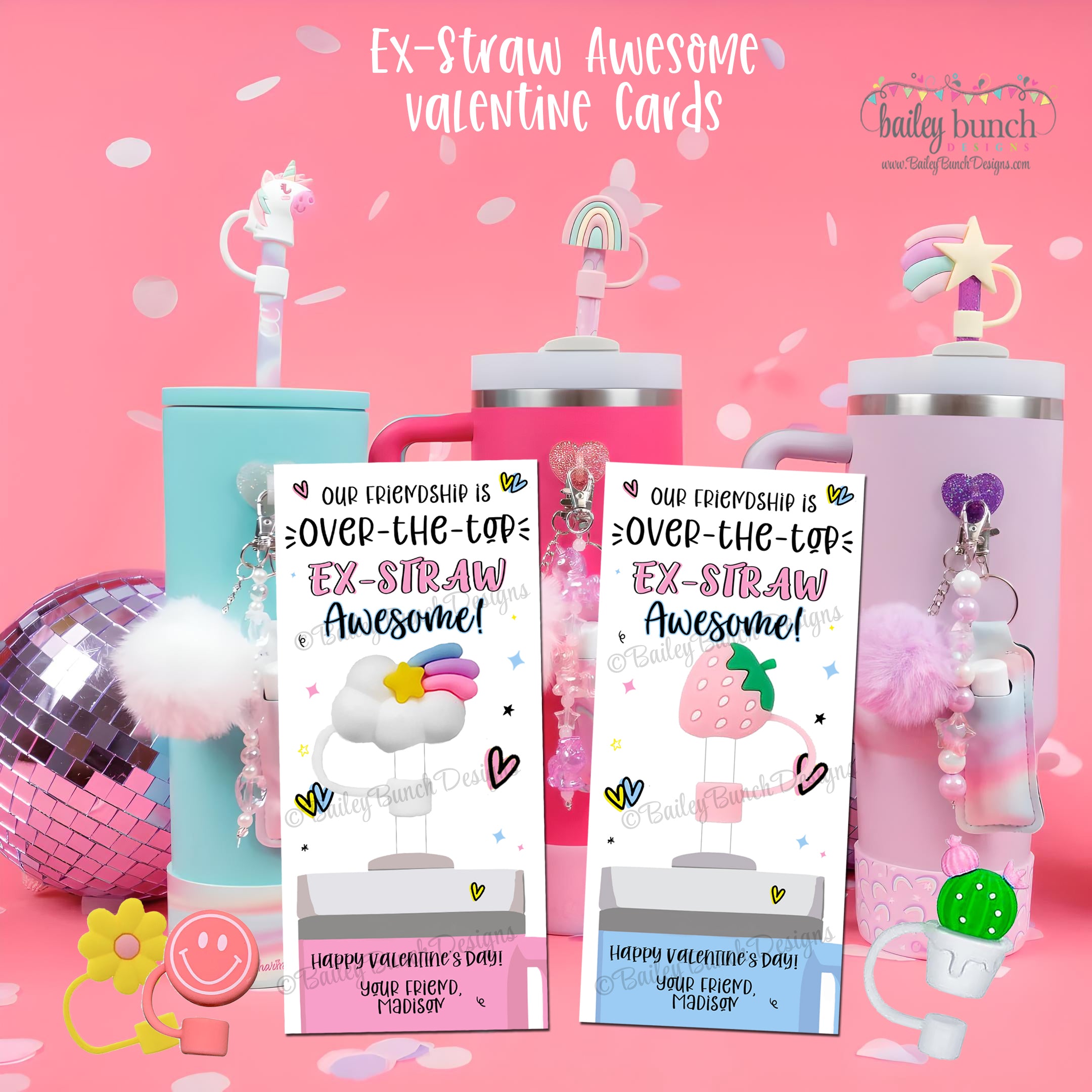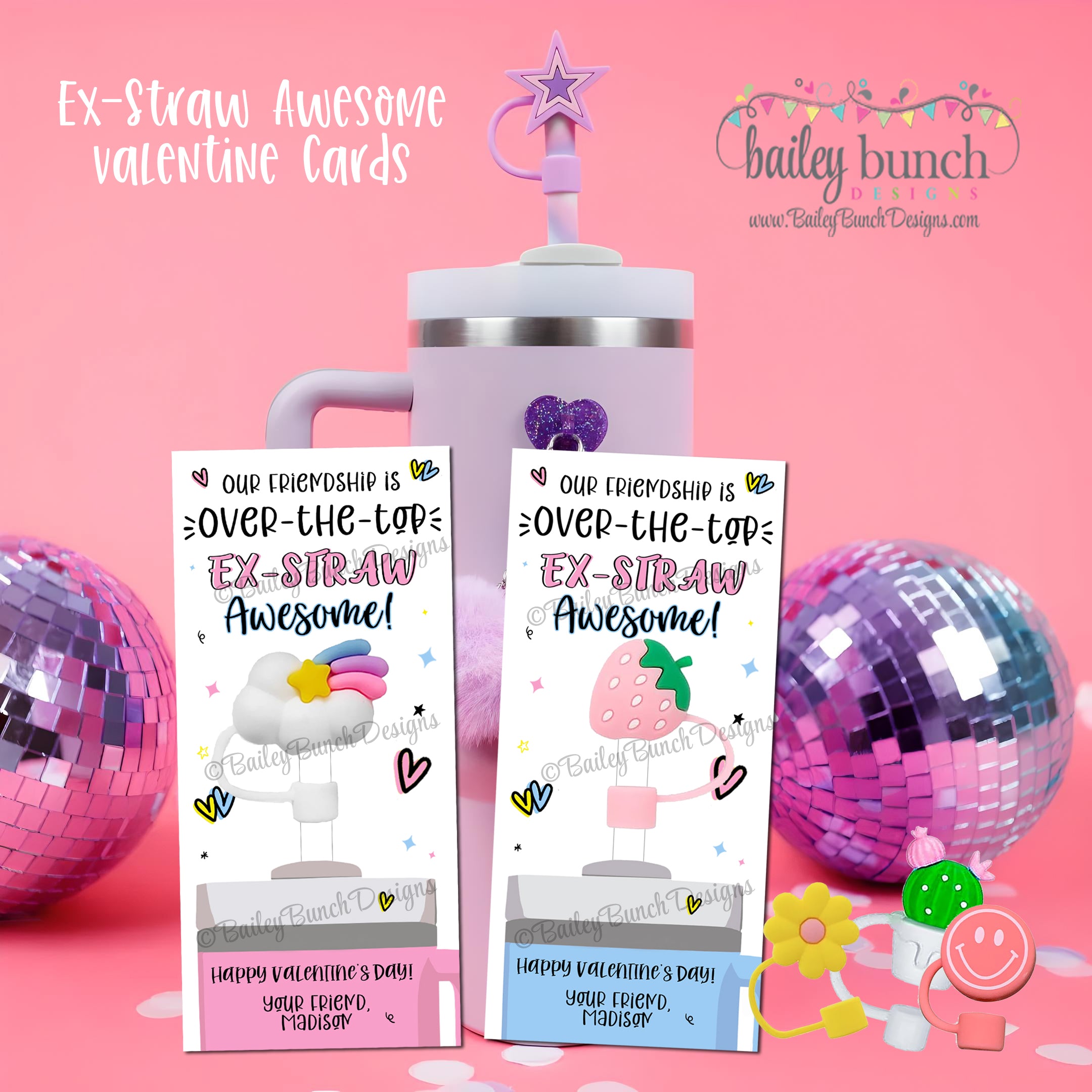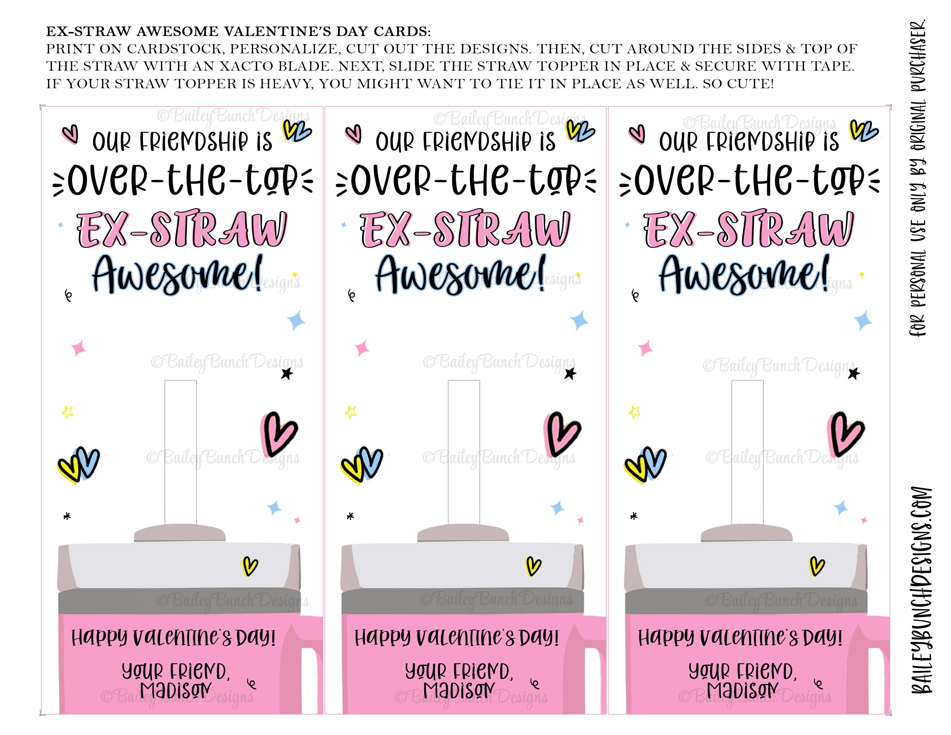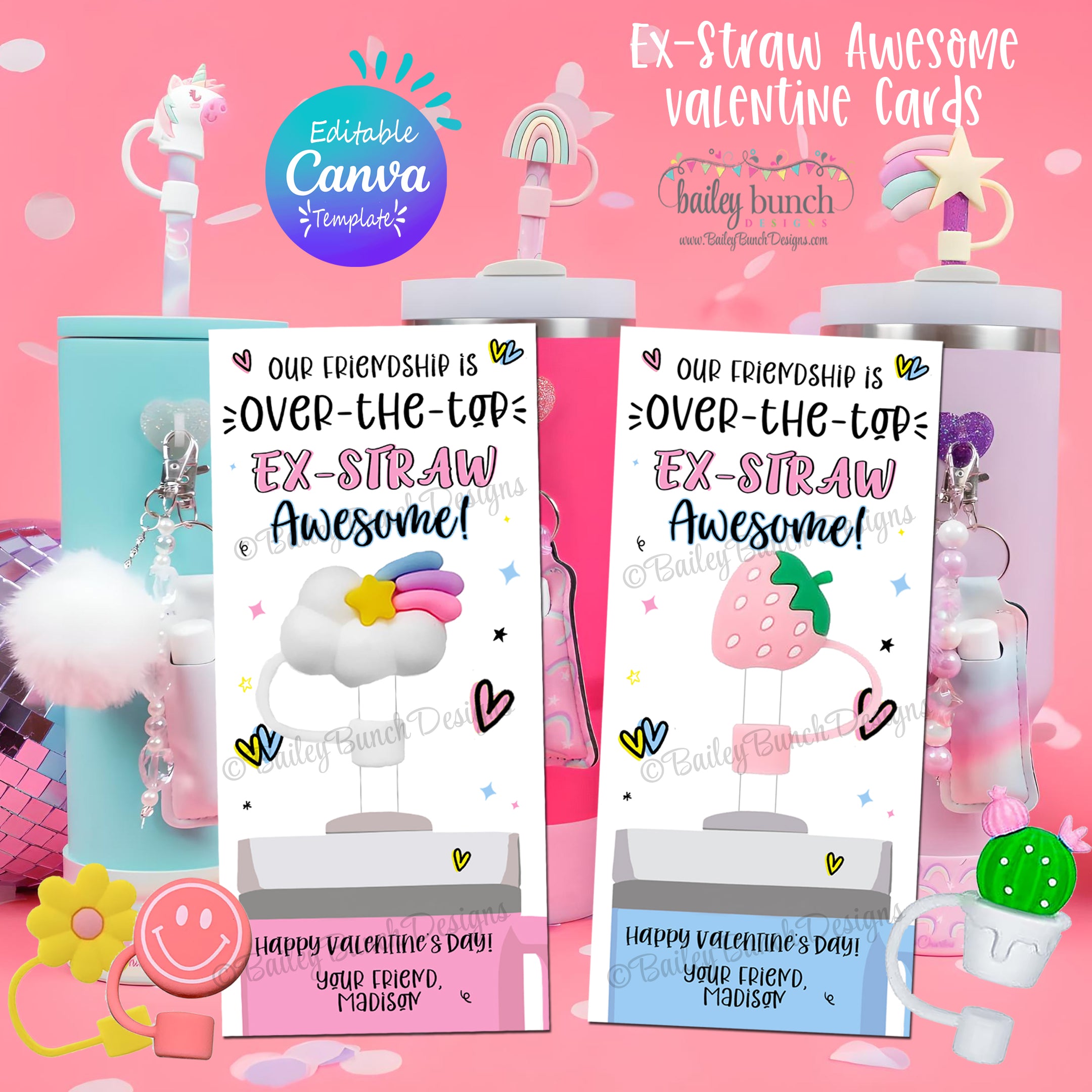 This valentine is over-the-top EX-STRAW awesome & unique! This EDITABLE Canva Template Printable straw topper valentines are so easy to assemble and such a super cute valentine idea! The straw topper valentine printables come in two different color options too. These unique and creative DIY valentines are perfect for elementary school valentine exchanges and classroom parties!