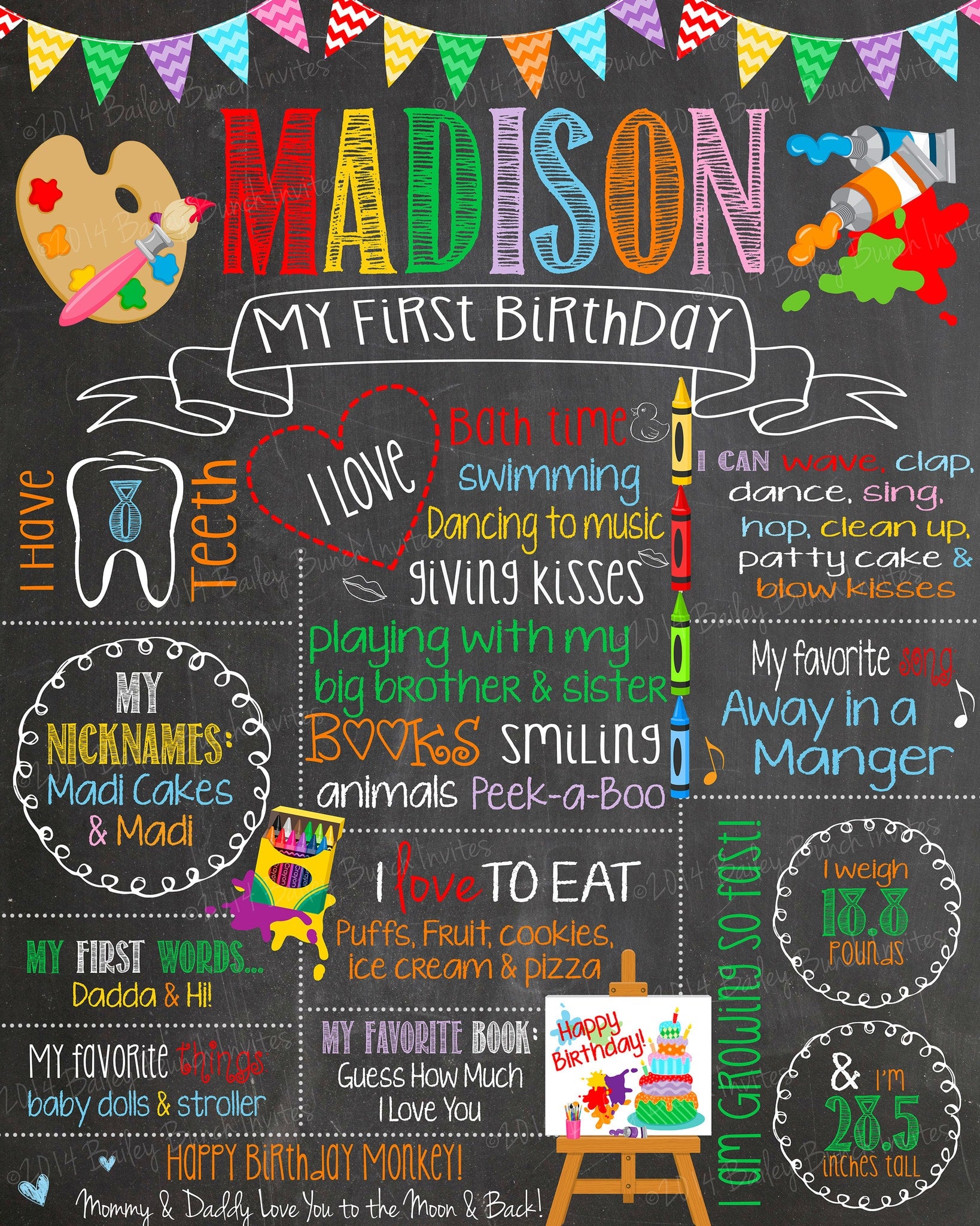 Your chalkboard can be printed at most local photo print shops: walgreens, walmart, staples, fedex kinkos, office depot, etc The file may be printed on card stock or regular paper and then mounted onto foam board or placed in a frame. Most office supply stores will print the poster and mount it on foam board for you! The ways of presenting your child's first birthday poster are endless: you could frame it, mount it on a foam board, print it on a canvas, or even share it digitally on facebook or thru email.