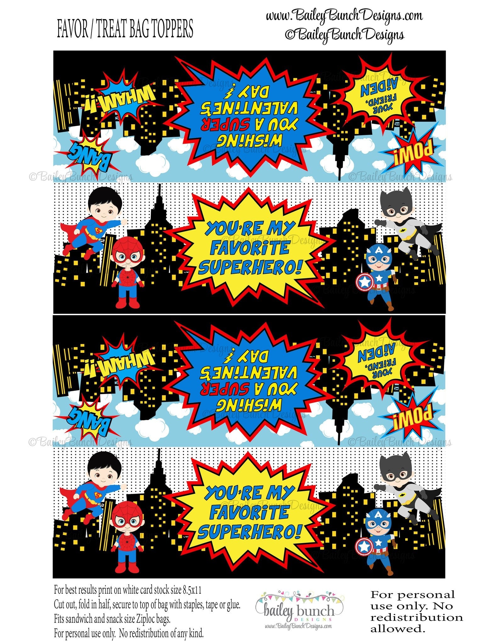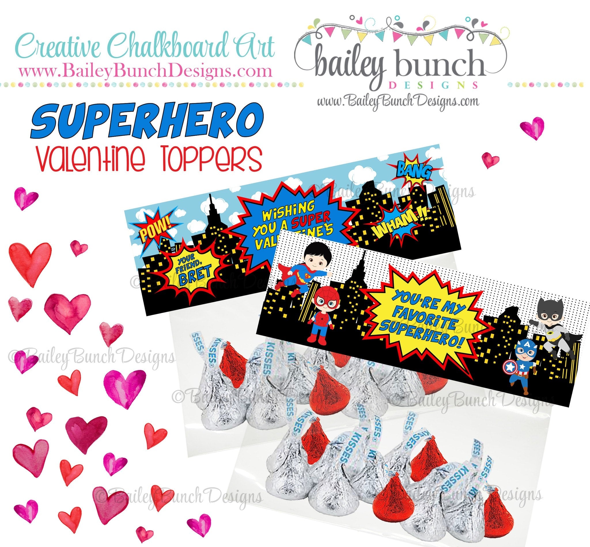 Superheros Valentine Bag Toppers, Valentines - 2 DESIGNS!!