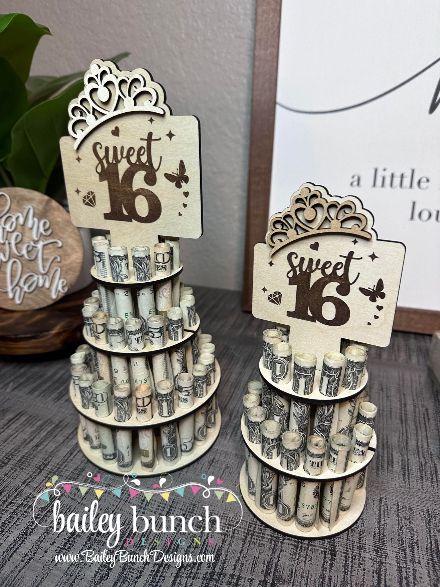 Sweet 16 Money Cake Holder - Engraved SIXTEEN0520