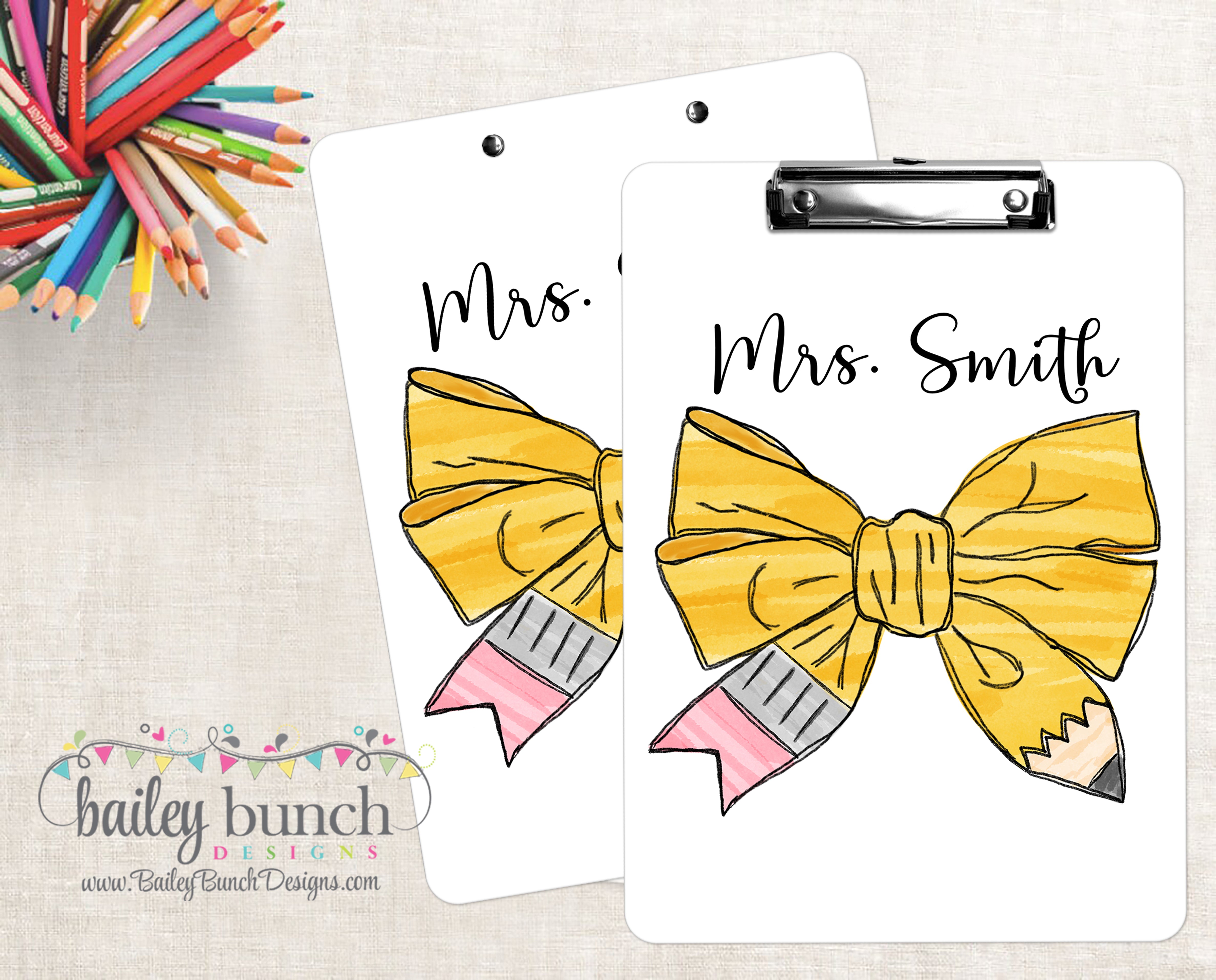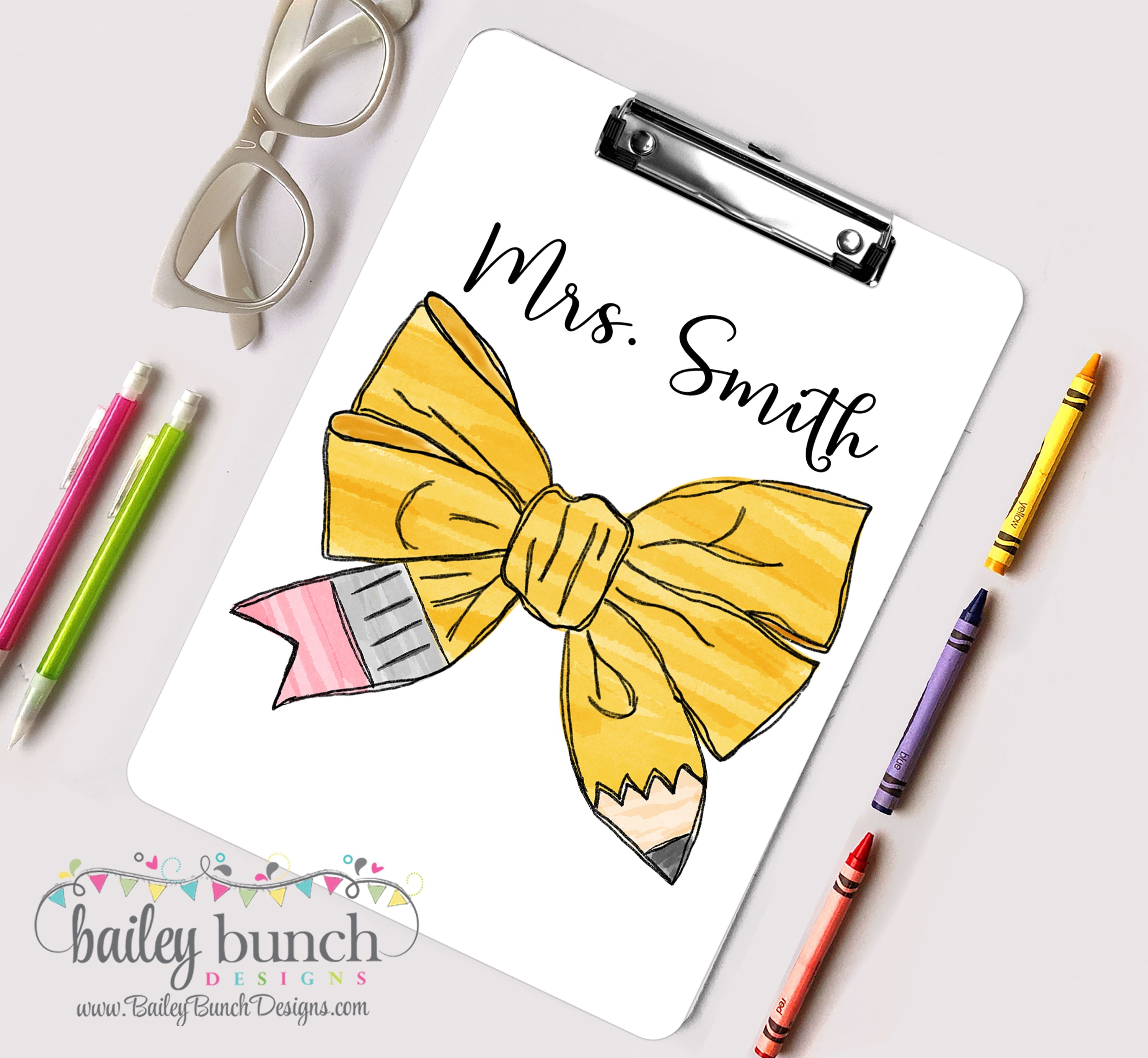 Teacher Pencil BOW Personalized Clipboard Teacher Appreciation CLIPPBOW0520