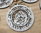 Each Ornament is hand crafted out of Birch & Walnut & is approximately 3" round