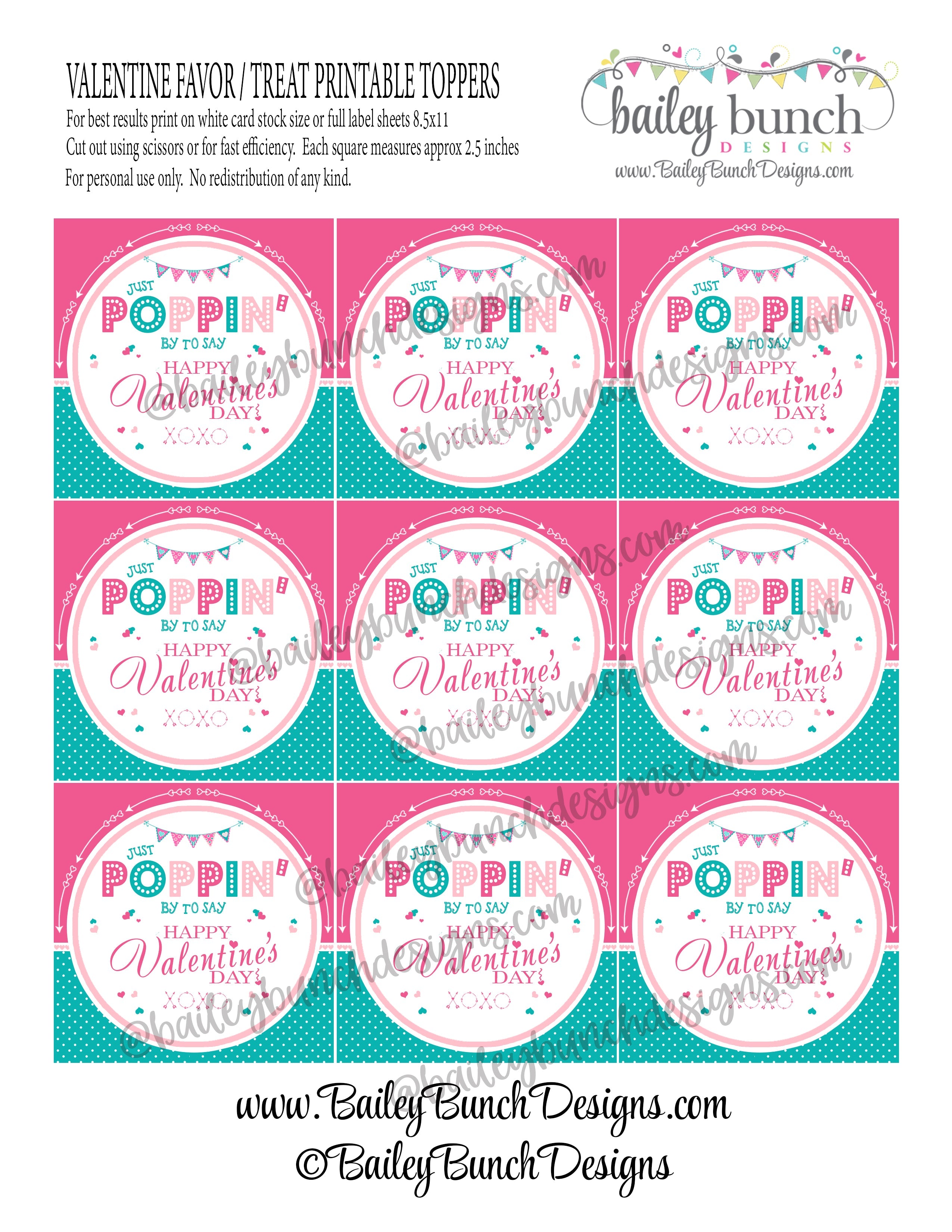 Valentine Pop It Fidget Gift Tags, Valentines Gifts, Pop Its Fidget Valentine Gifts- PINK Just Poppin' By to Say Happy Valentine's Day - INSTANT DOWNLOAD
