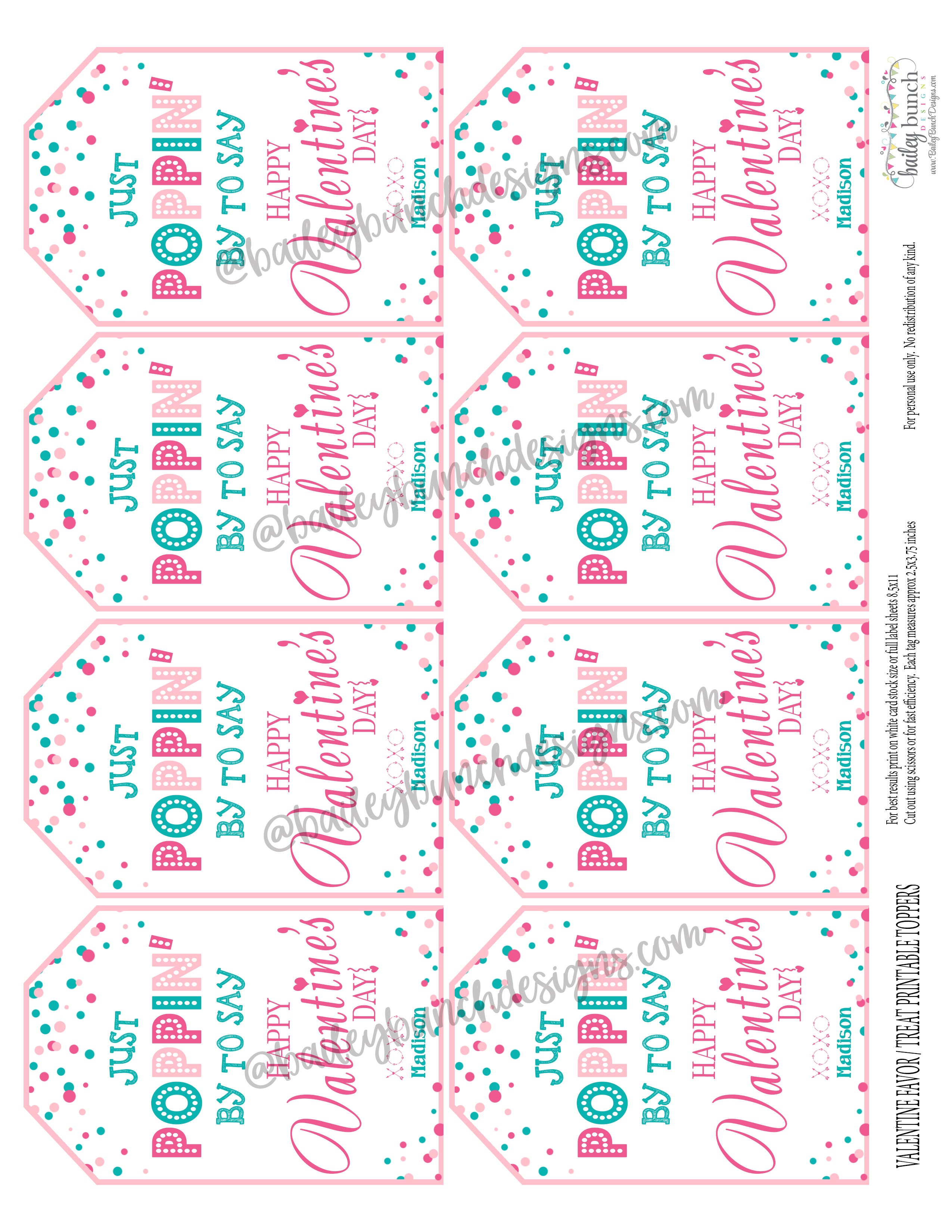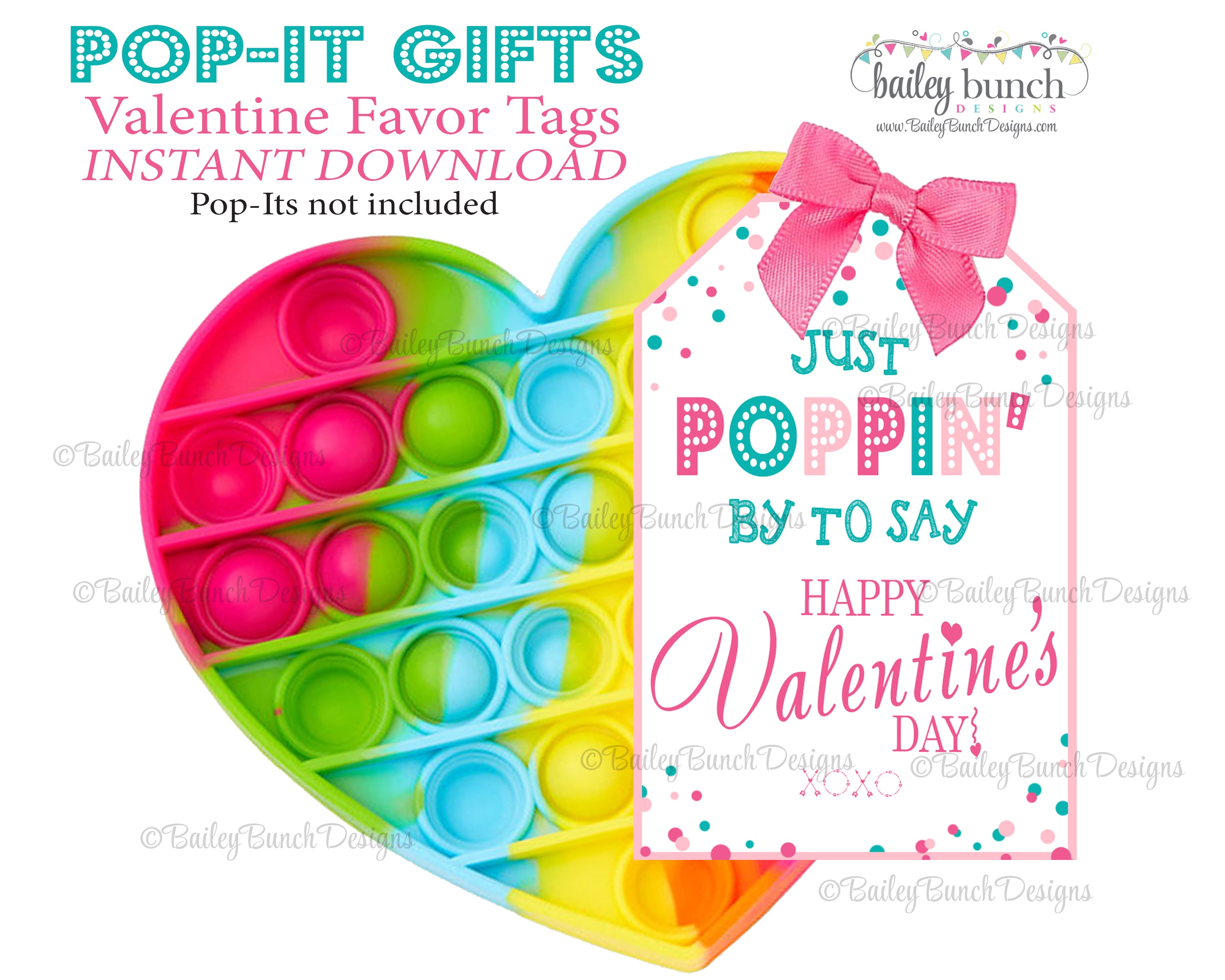 Valentine PINK Pop It Fidget Gift Tags, Valentines Gifts, PINK Valentine TAGS - Just poppin' by to say Happy Valentines Day - INSTANT DOWNLOAD