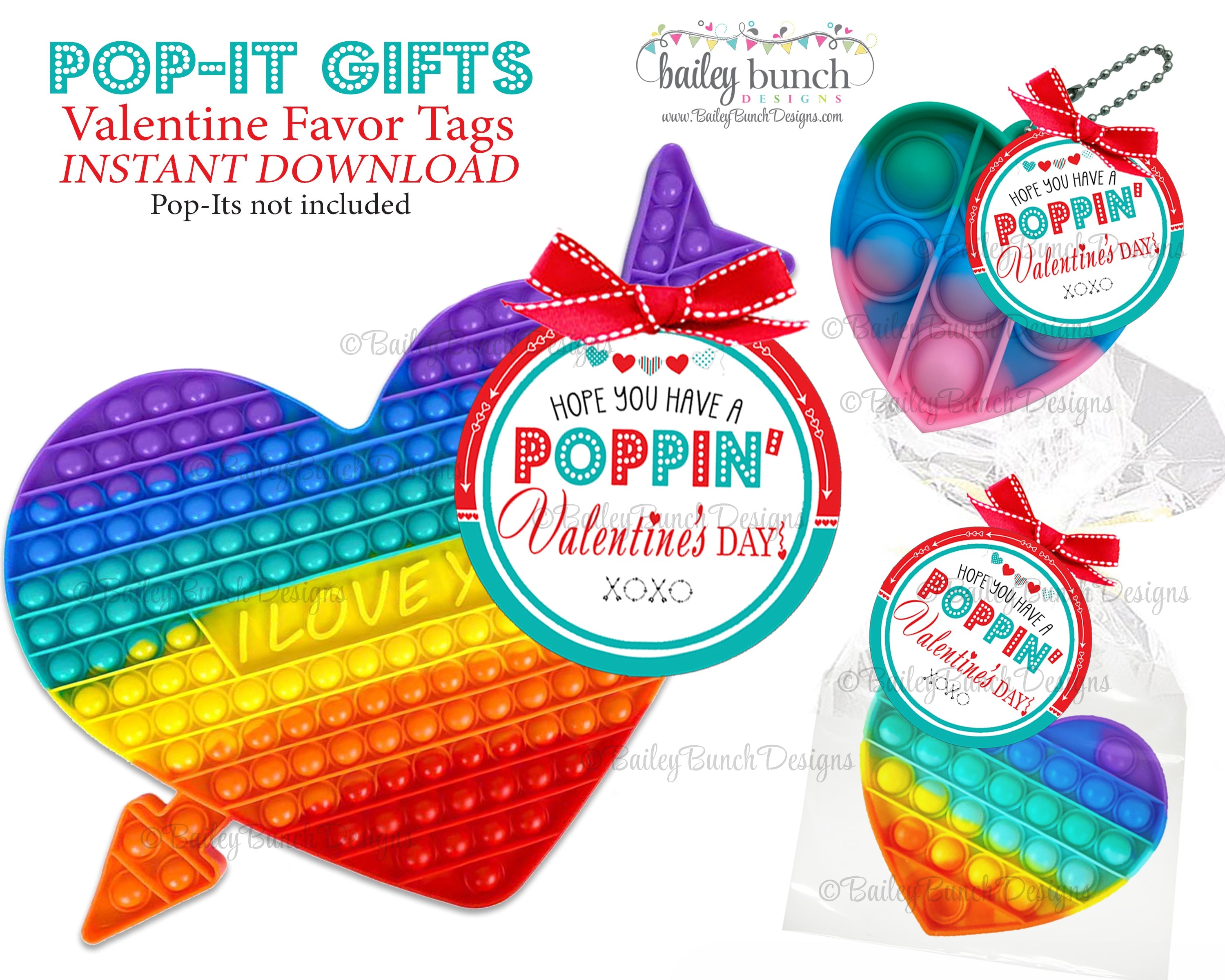 Valentine Pop It Fidget Gift Tags, Valentines Gifts, Pop-Its Fidget Valentine Gifts- Red Circles - INSTANT DOWNLOAD