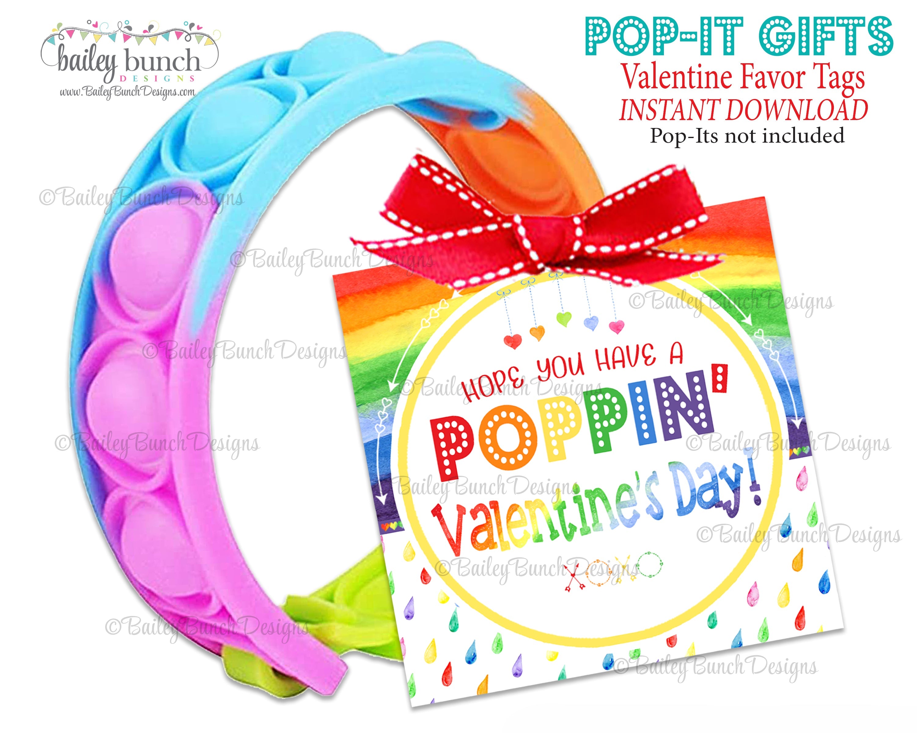 Valentine RAINBOW Pop It Fidget Gift Tags, Valentines Gifts, Rainbow Valentine SQUARE - Hope your valentines day is poppin' - INSTANT DOWNLOAD
