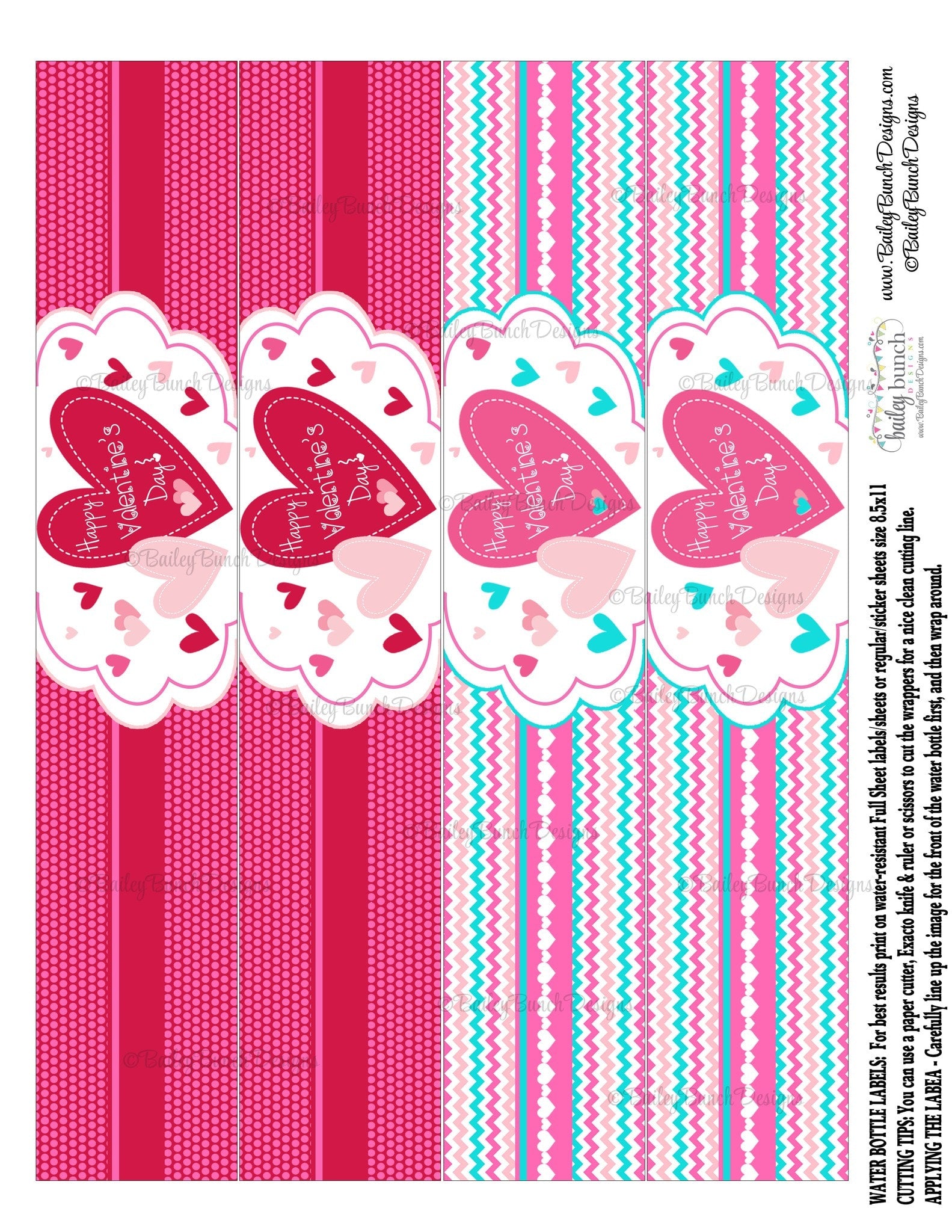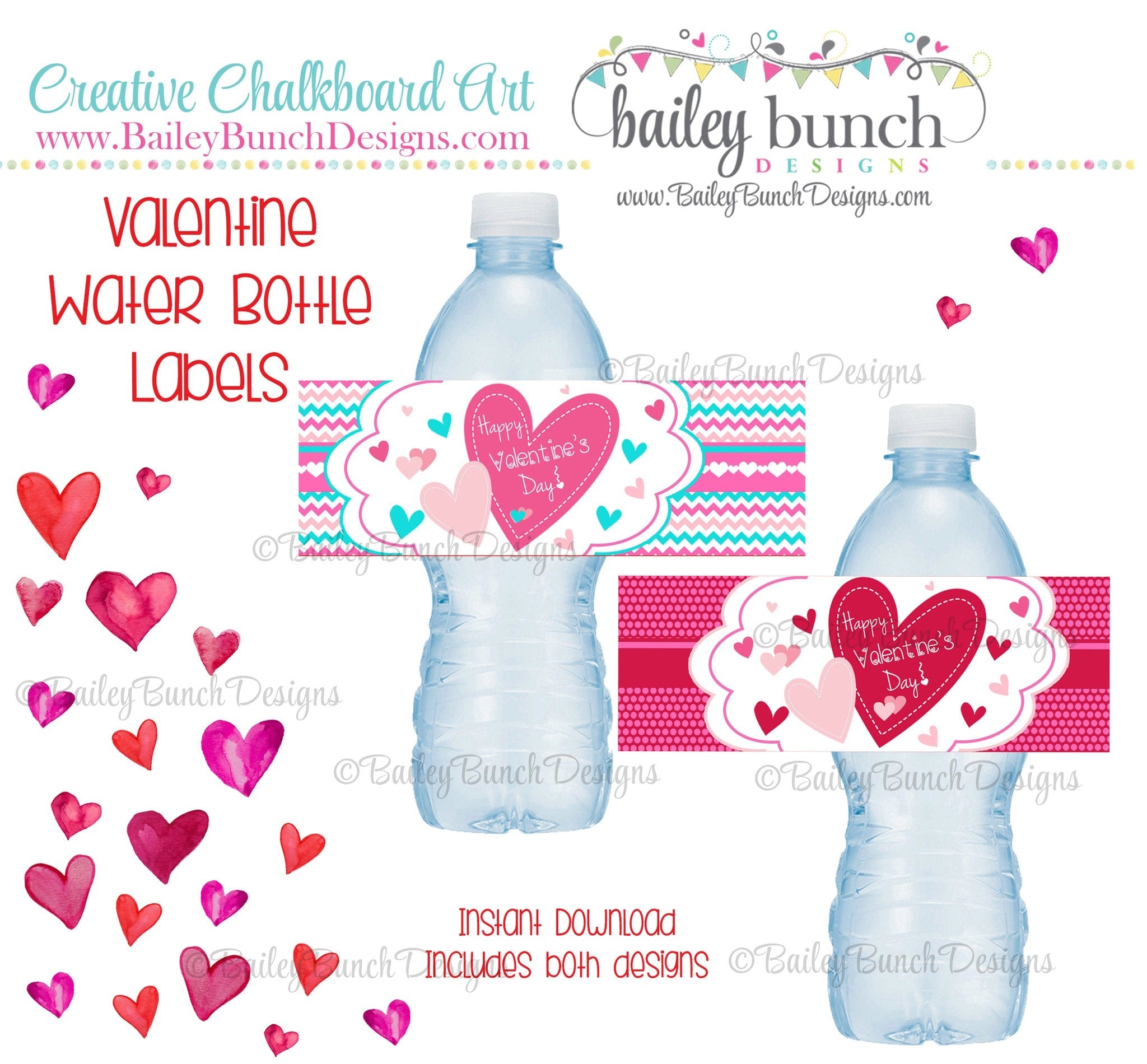 Valentine Water Bottle Labels, Valentines  - INSTANT DOWNLOAD