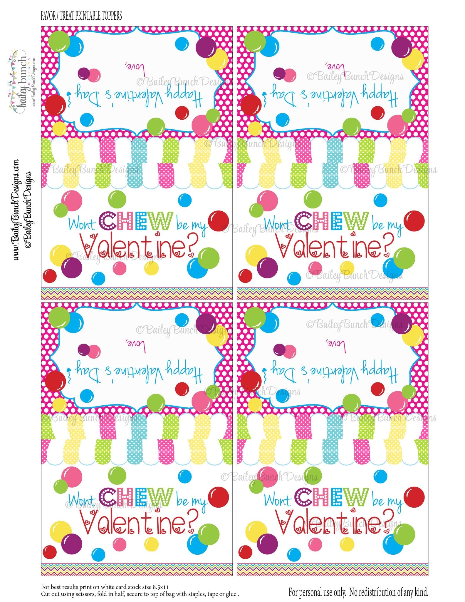 Wont CHEW be my Valentine Treat Tags, Valentines INSTANT DOWNLOAD