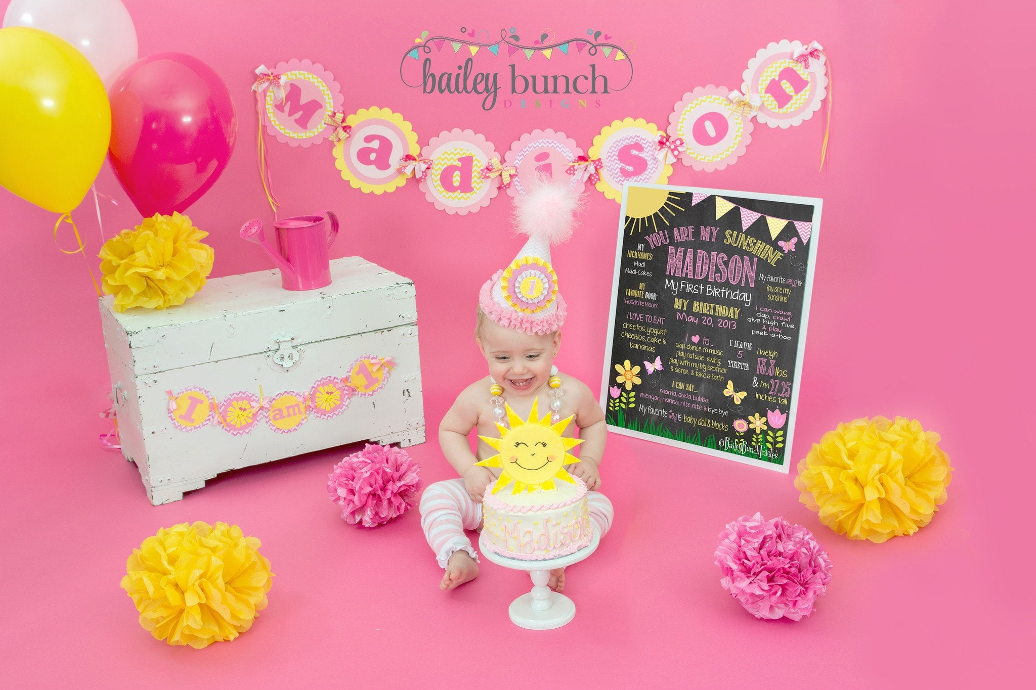 You are my Sunshine I am one Highchair Banner - PINK & YELLOW - INSTANT DOWNLOAD