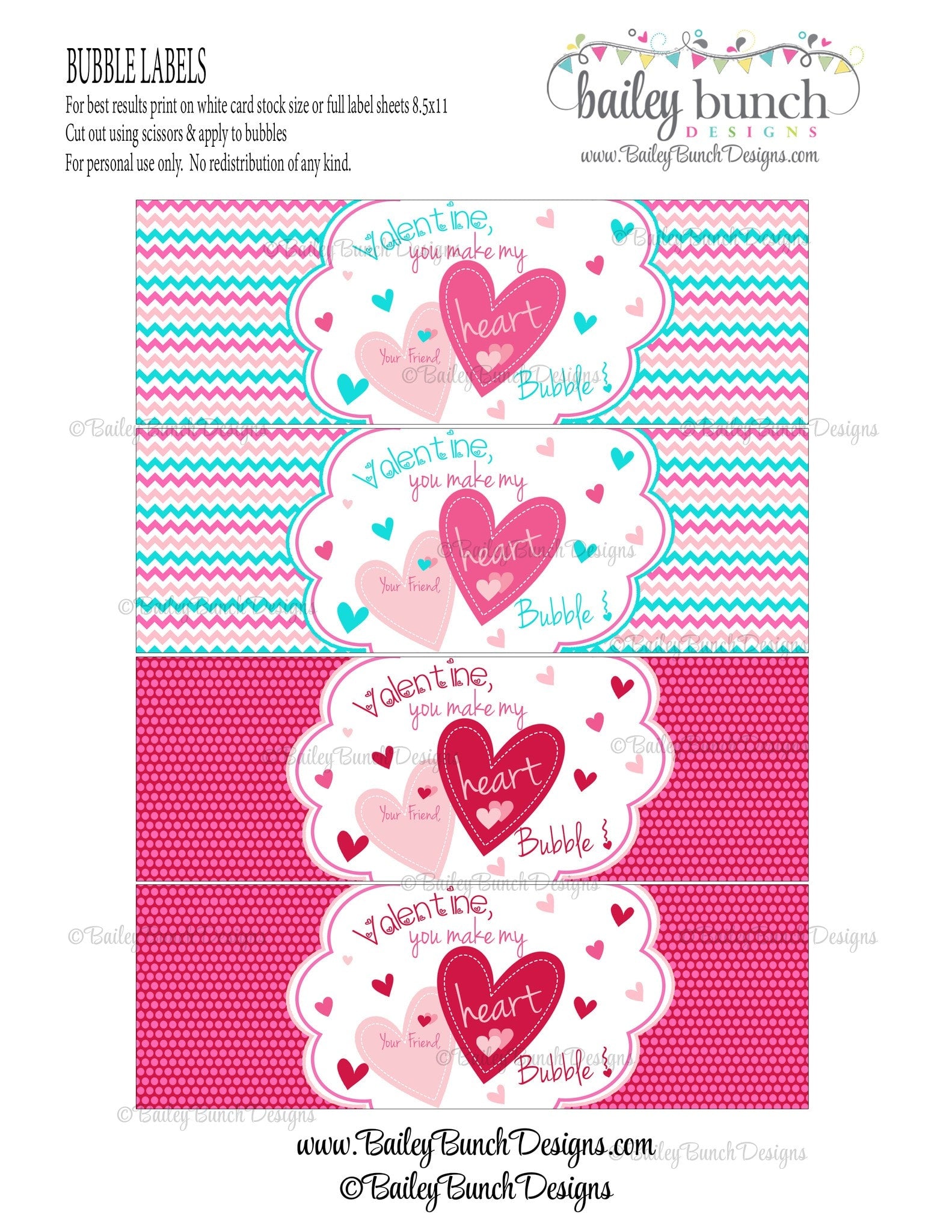 You make my heart bubble Valentine Treat Tags, Bubble Valentines - 2 DESIGNS!! INSTANT DOWNLOAD